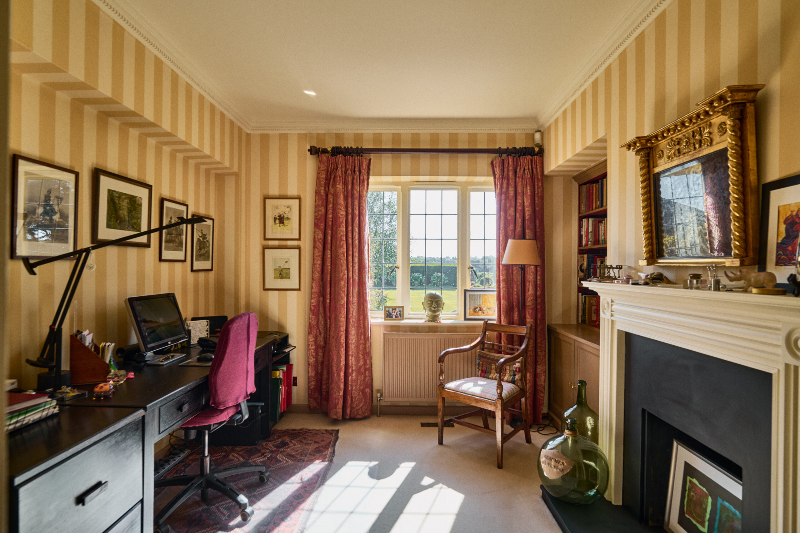 Step through the front door and a spacious reception hall welcomes you in, setting the scene for a home that’s been thoughtfully laid out for both relaxed family life and easy entertaining. There are two distinct living rooms, one with a wide bay window and a feature fireplace for cosy evenings in, and the other offering flexibility as a snug, library or even a playroom depending on your needs. There’s also a dedicated study and dining room, both quietly positioned with views over the garden.