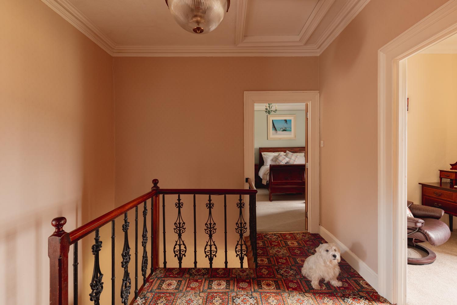 The farmhouse itself is well balanced and symmetrical in its proportions, with solid stone elevations and sash windows that flood the interior with natural light. Inside, the layout is both practical and generous, with rooms arranged off a central hallway that runs through the depth of the house, allowing for an easy, intuitive flow between the principal living spaces.