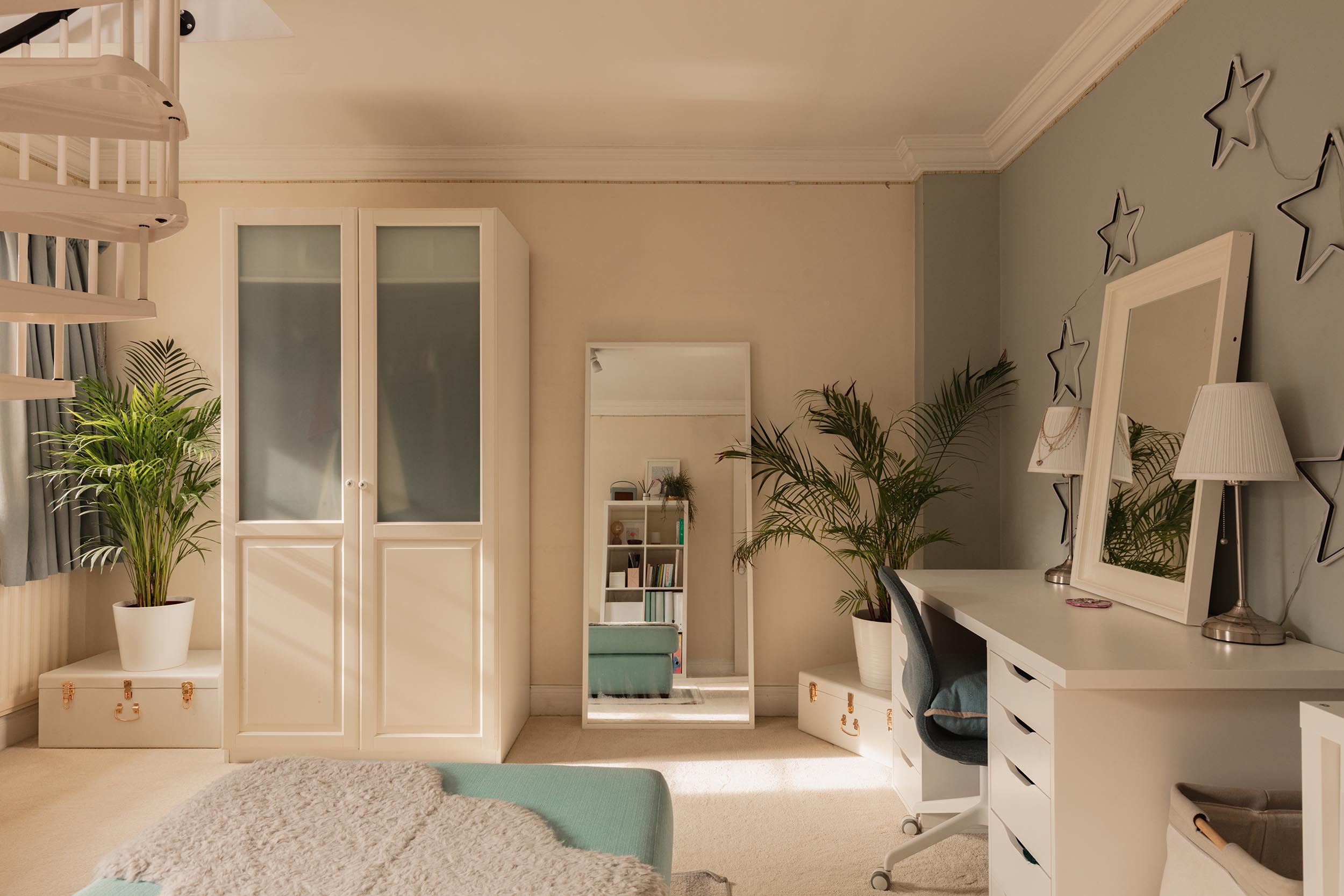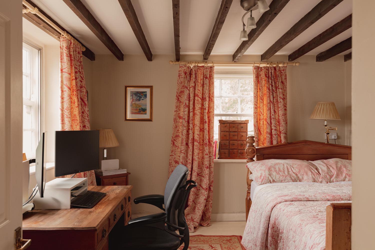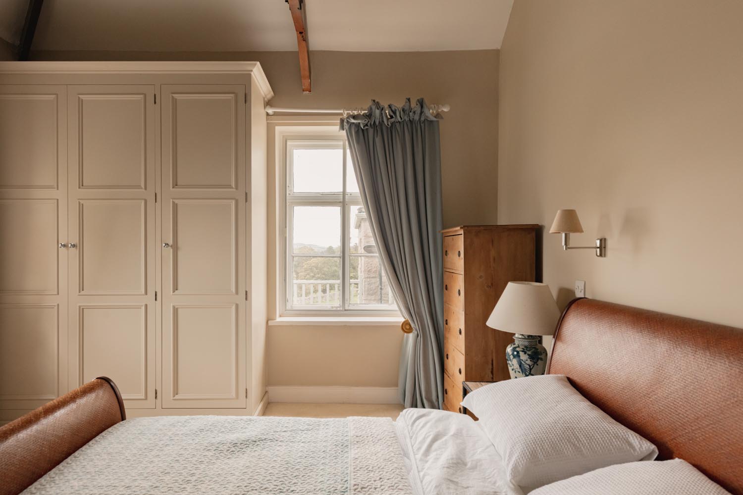 Three well-proportioned double bedrooms are arranged across this floor, each with its own character and outlook. The principal bedroom sits to the front, enjoying the finest of the views and an en-suite shower room, while another bedroom features a charming spiral staircase leading to a converted attic room, ideal as a private study, studio or occasional sleeping area. The family bathroom is presented in a soft, neutral palette with classic fittings and a quietly modern feel.