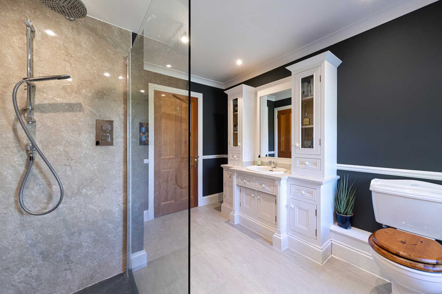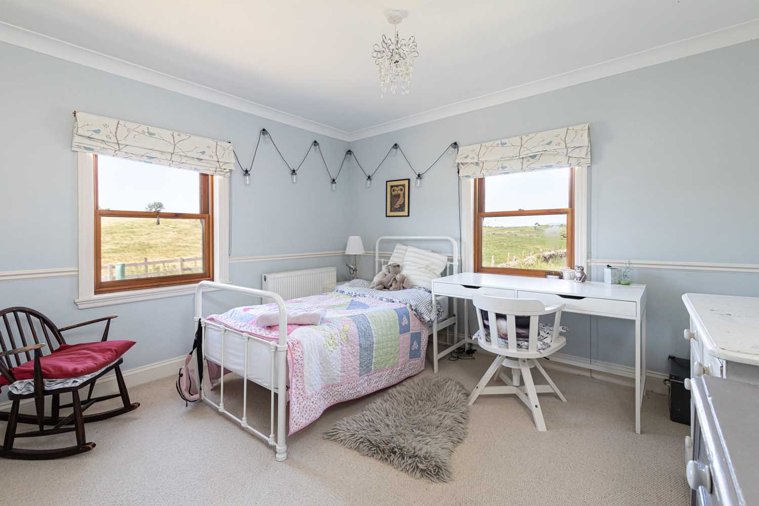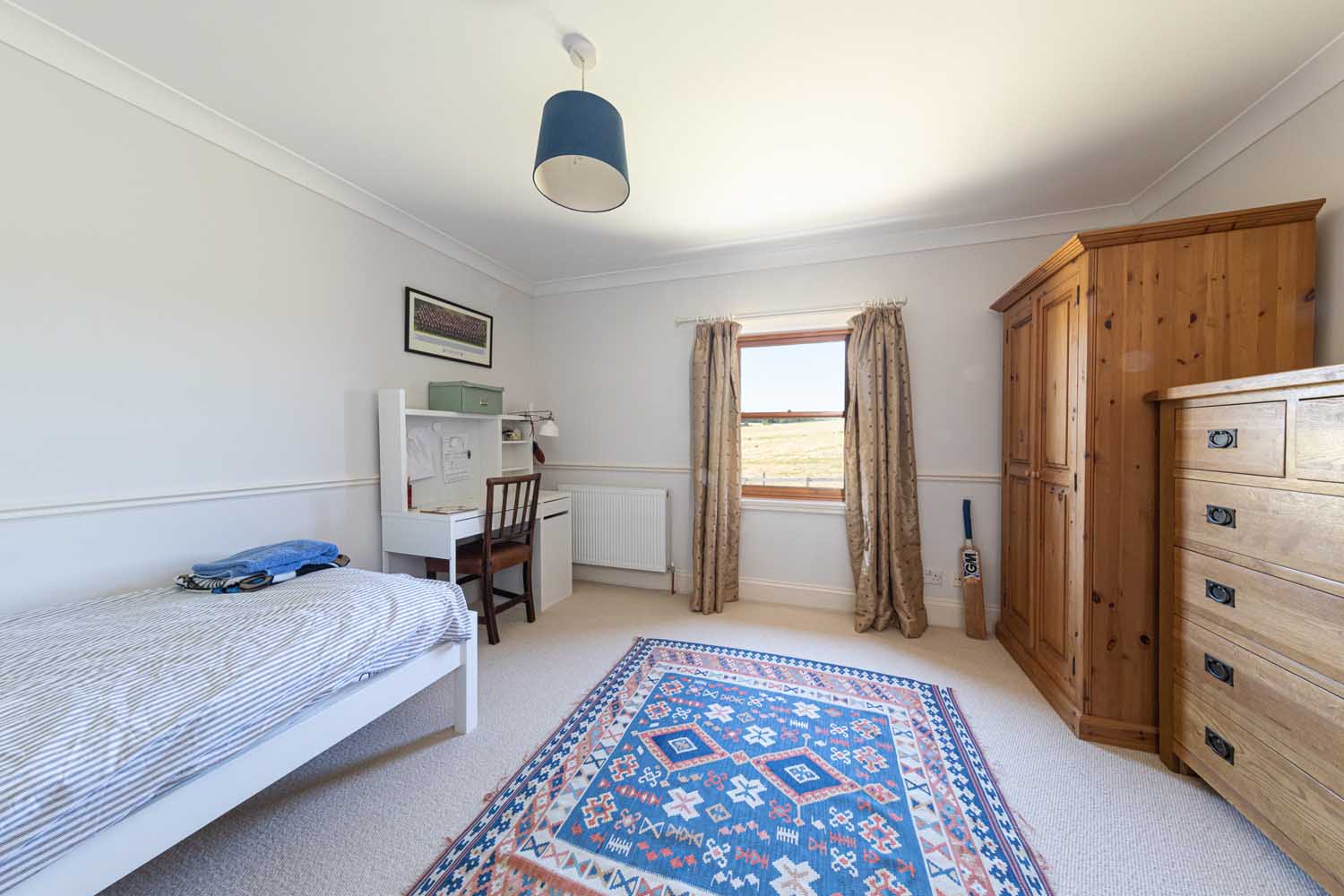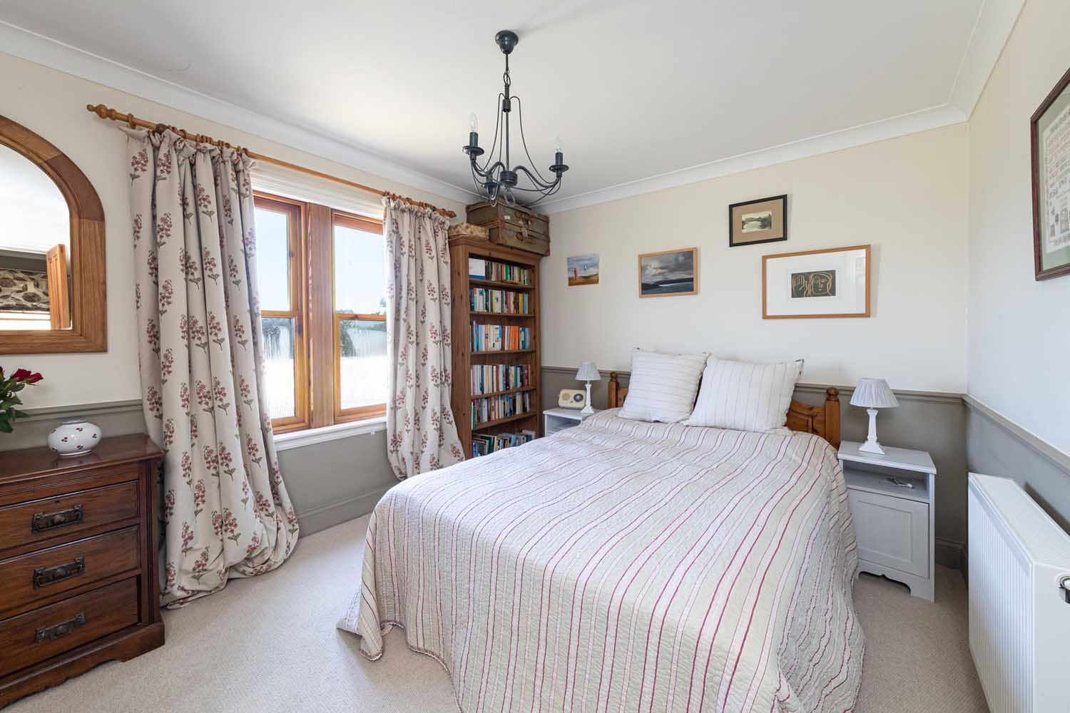Stairs rise via a half landing to the first floor with all bedroom accommodation radiating off a wide hall. The fabulous principal bedroom features a vaulted ceiling supported by eye-catching A-frame beams. The vast bedroom is light and airy, with the elevated position enhancing the views. Three further double bedrooms make the most of varying outlooks, and all are finished in clean, modern style. The bedrooms are served by a beautiful bathroom and an equally lovely shower room. Both rooms have high specification suites with traditional styling that complements Old School House to perfection.