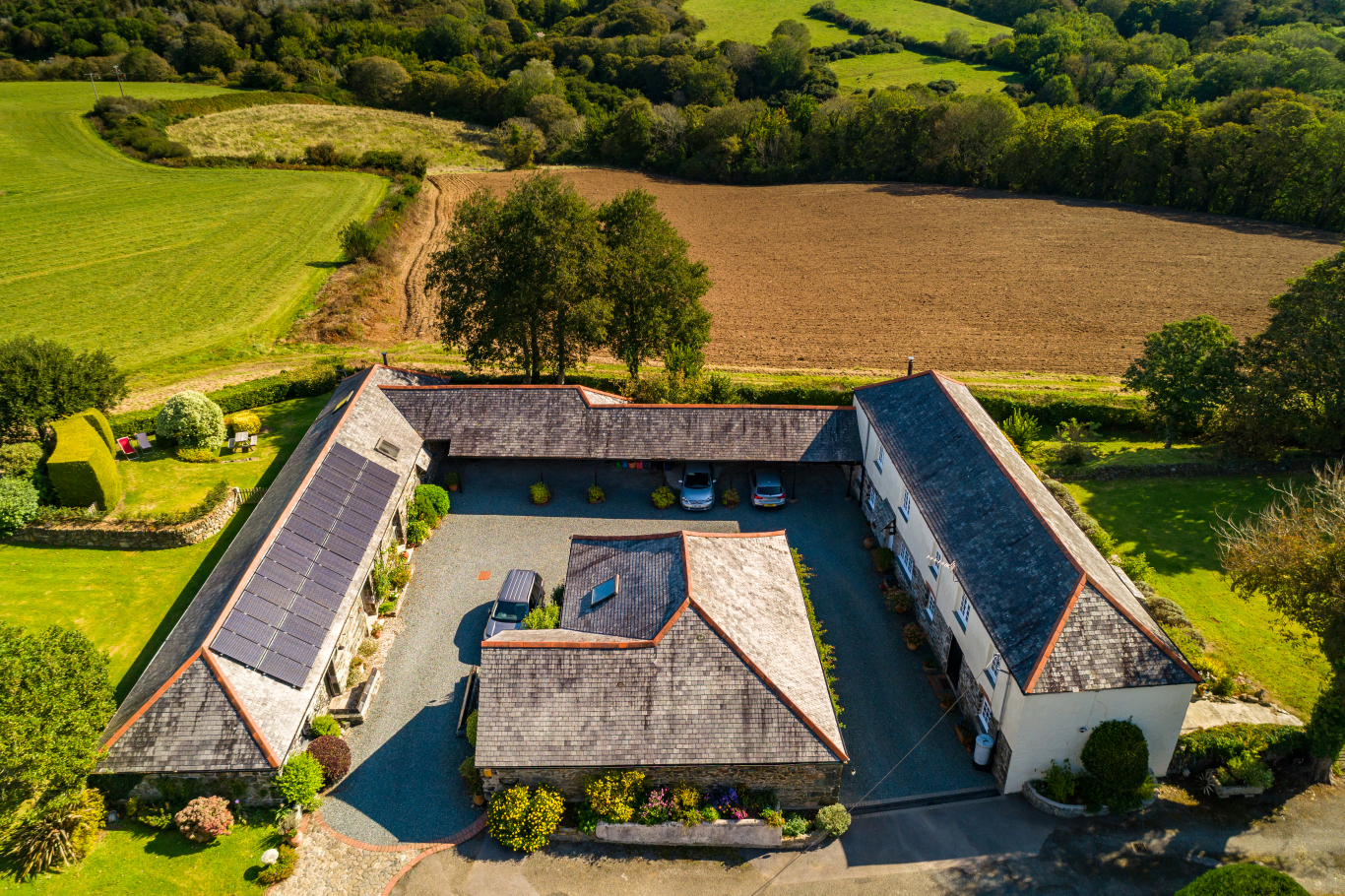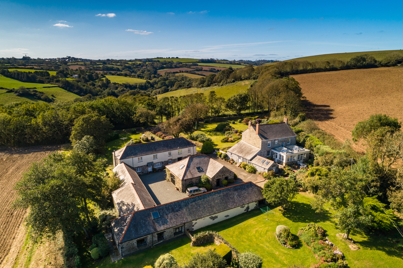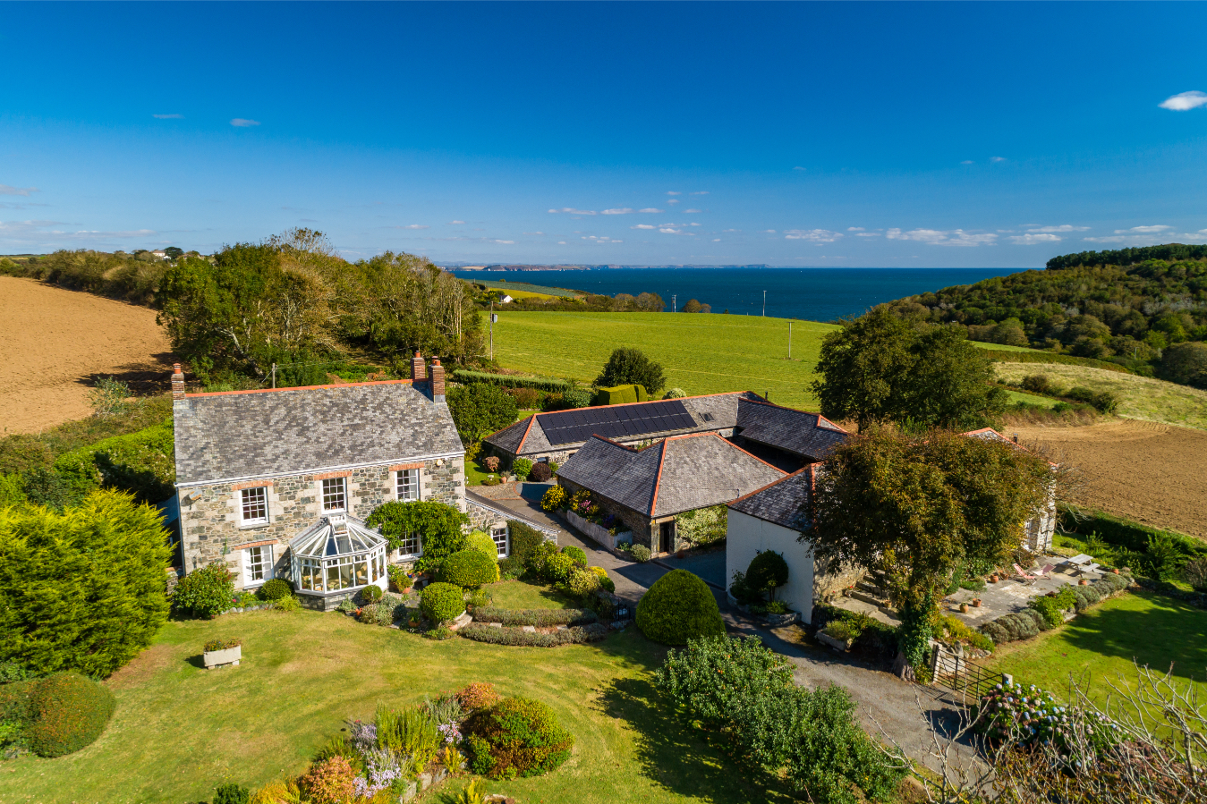 This beautiful former farm is set in a wonderfully tucked away and peaceful position with no near neighbours, just a short walk from the coast and the pretty hamlet of Porthallow. The approach is via some of the most picturesque countryside on the entire Lizard Peninsula and the final mile or so creates a wonderful sense of seclusion and privacy as you approach the scenic driveway up to the property. The house sits in a more elevated position on the western side of the grounds and the barns are located on the eastern side, out of direct view of the house.