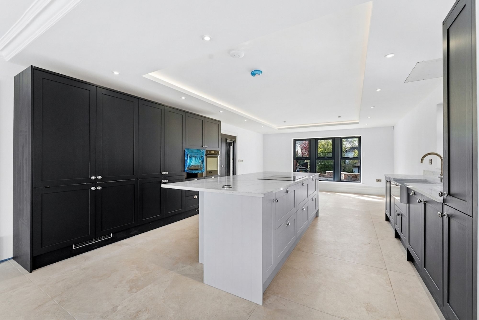 At the heart of Ravensworth, the kitchen and open plan living space are conceived as a single, expansive everyday hub, running the full width of the house and opening through wide glazed doors onto the rear terrace and gardens. A large central island with granite worktops forms the natural gathering point for family and guests, surrounded by a run of bespoke cabinetry in a sophisticated two-tone palette that balances country house character with a clean, contemporary edge. The specification is set to include a full suite of Neff appliances, a fitted dishwasher and integrated tall fridge and tall freezer, ensuring the space performs as well as it looks for both day to day cooking and larger scale entertaining.