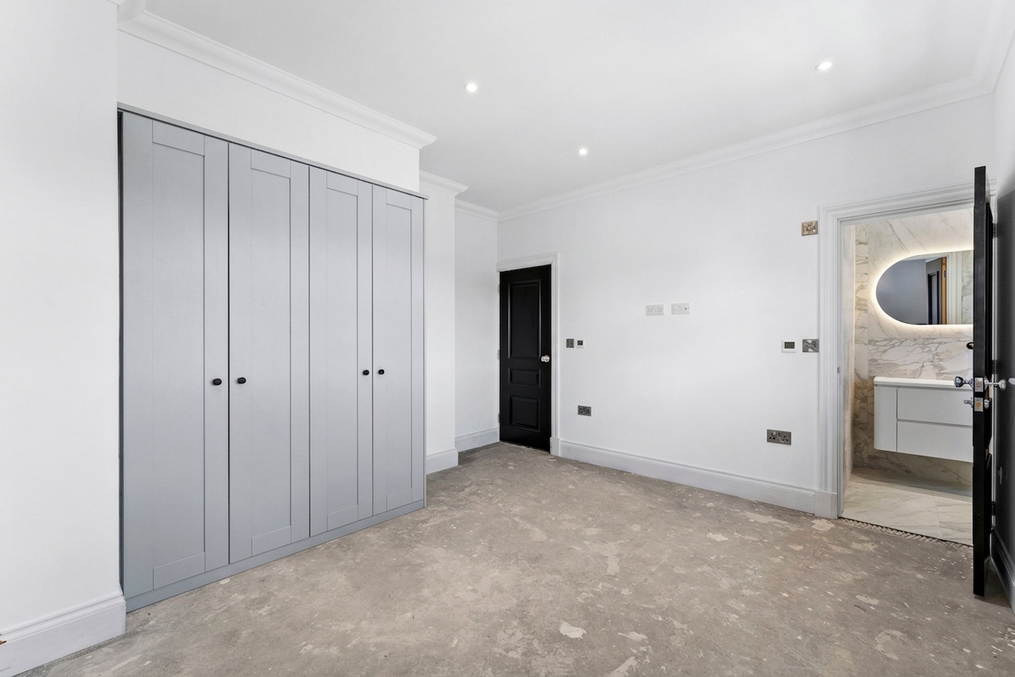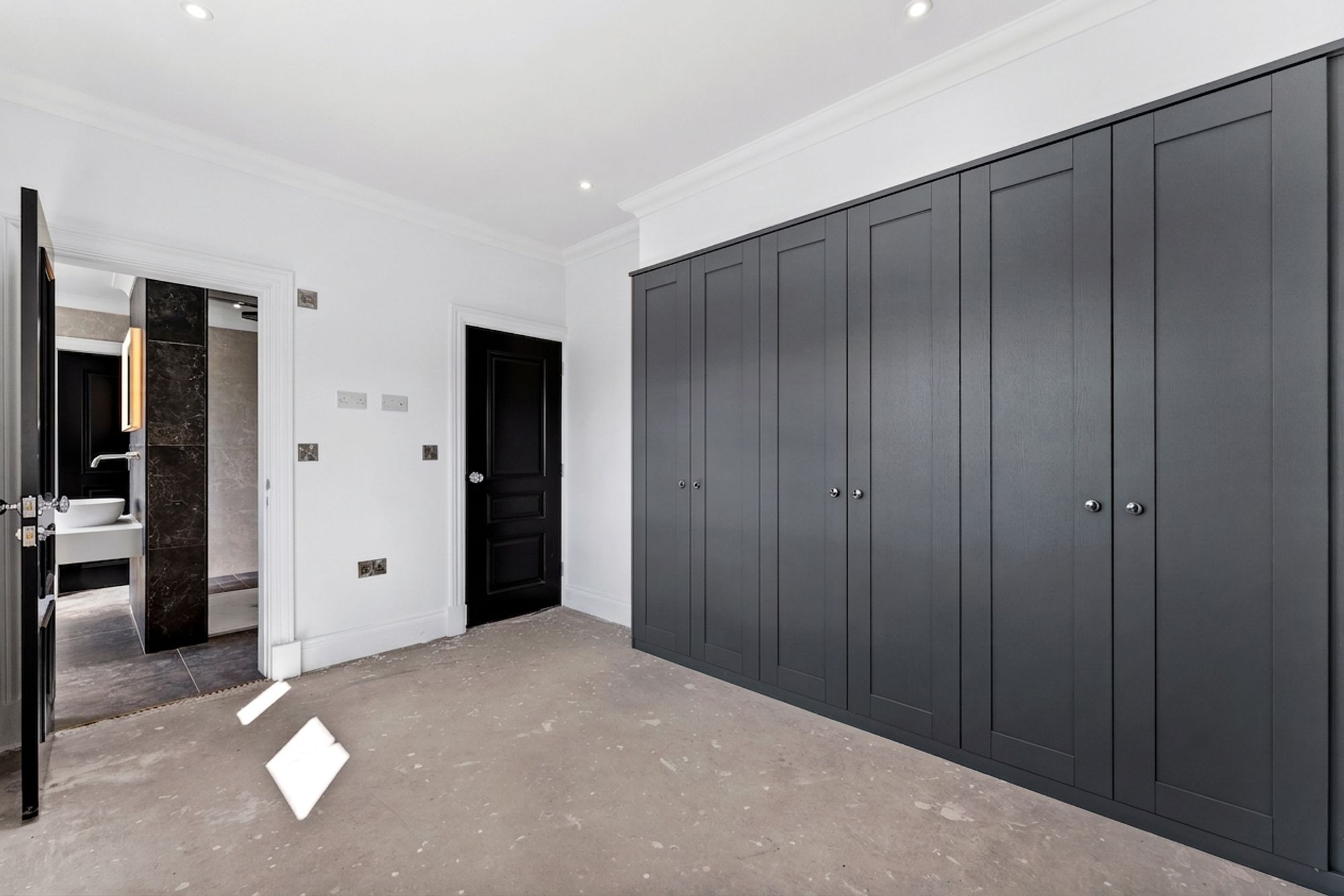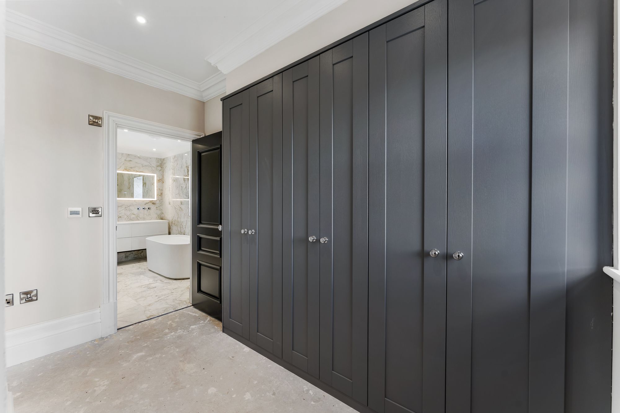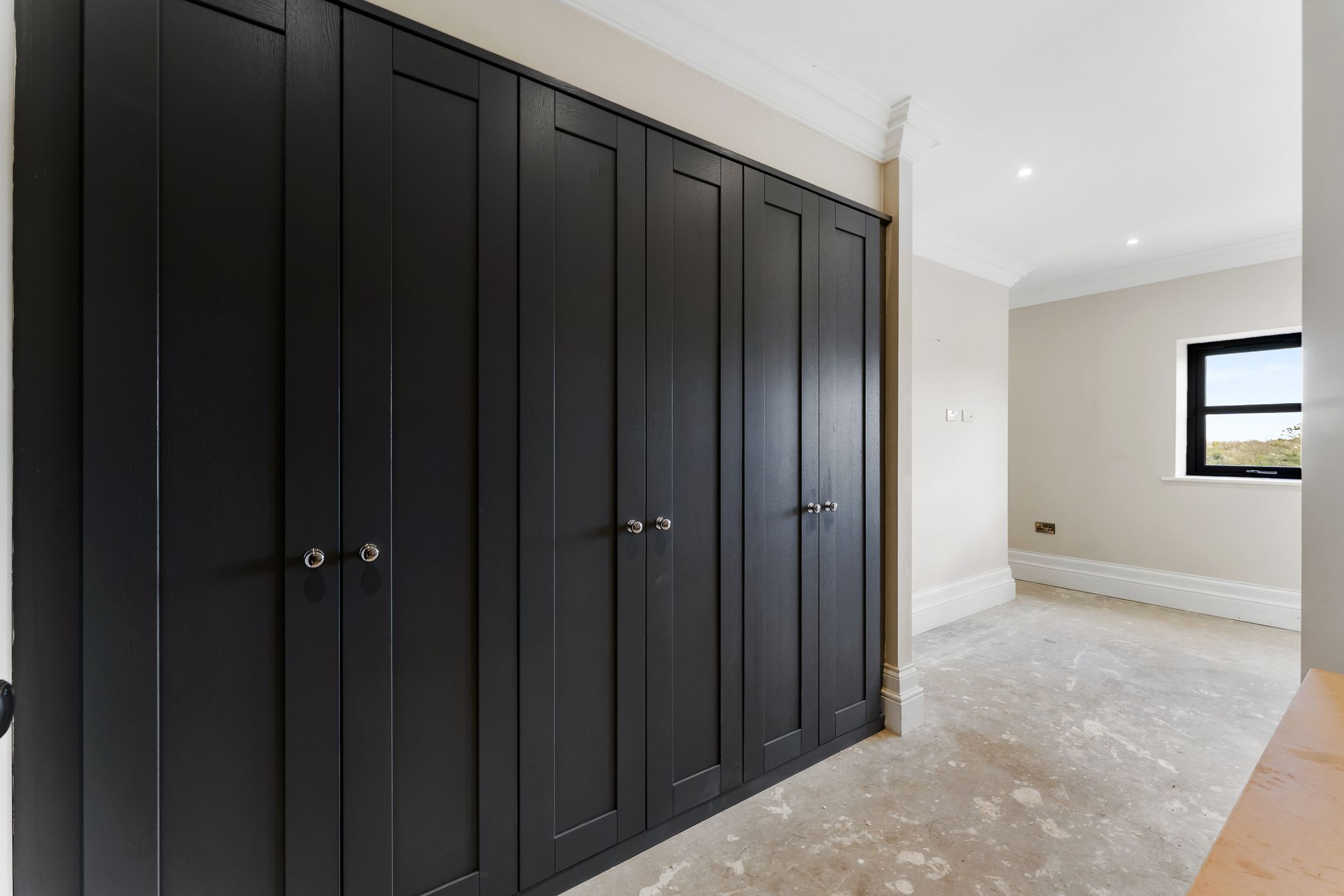 To the rear of the home, the principal suite enjoys a beautiful outlook, with a dedicated dressing area lined with full height wardrobes creating a refined, boutique dressing room approach to the bedroom and its en suite. The remaining three double bedrooms each have their own fitted wardrobes and individual en suite facilities, ensuring every member of the household benefits from both abundant storage and the comfort and privacy of their own bathroom.