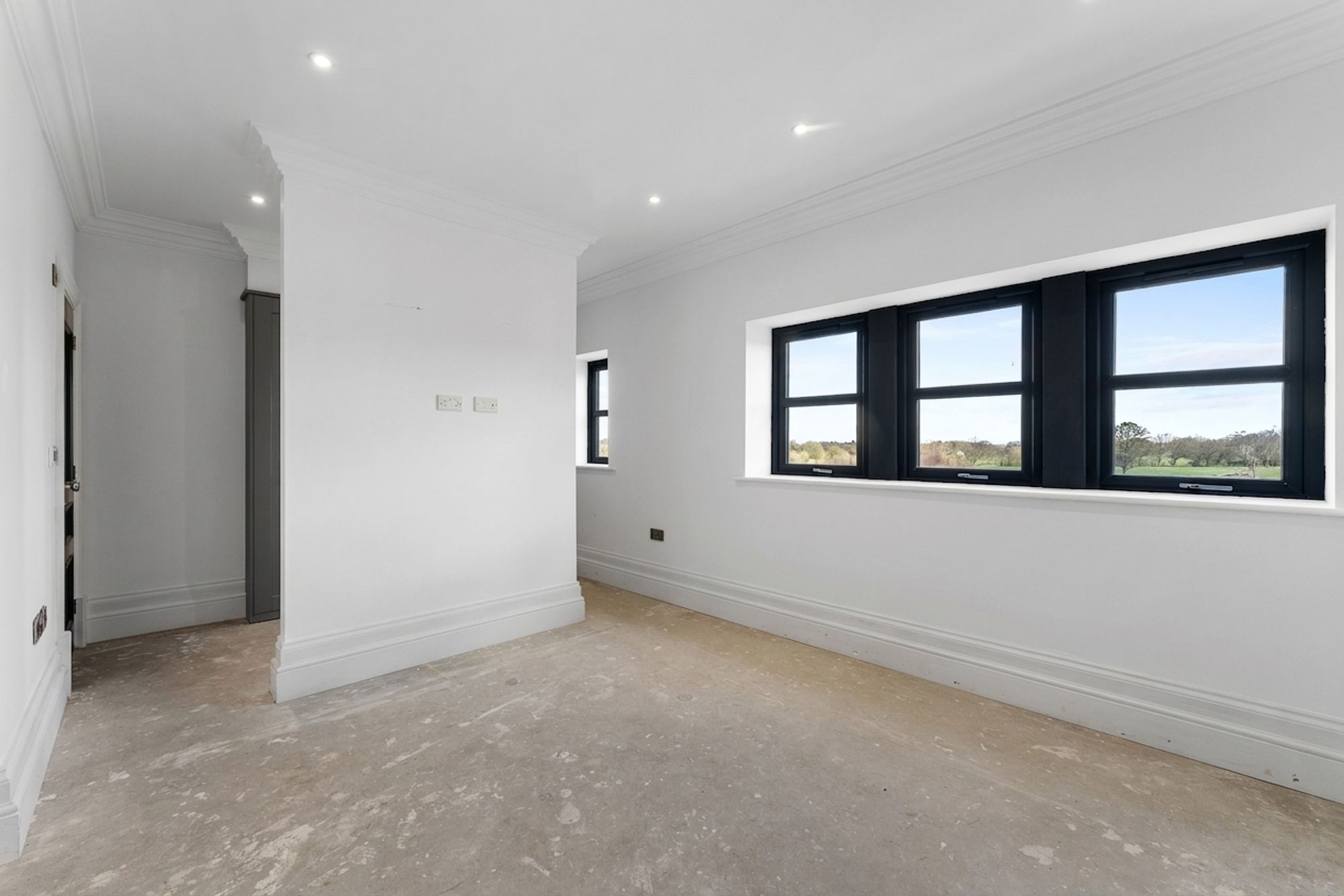 The first floor offers four genuinely generous double bedrooms, each combining calm, neutral decoration with bespoke fitted wardrobes that maximise storage while keeping floor space clear for furniture and circulation. Thoughtfully arranged off the central landing, they are positioned to take in a variety of aspects over the gardens and surrounding countryside, with wide picture windows, deep skirtings and recessed downlights giving a quietly luxurious, hotel like feel.