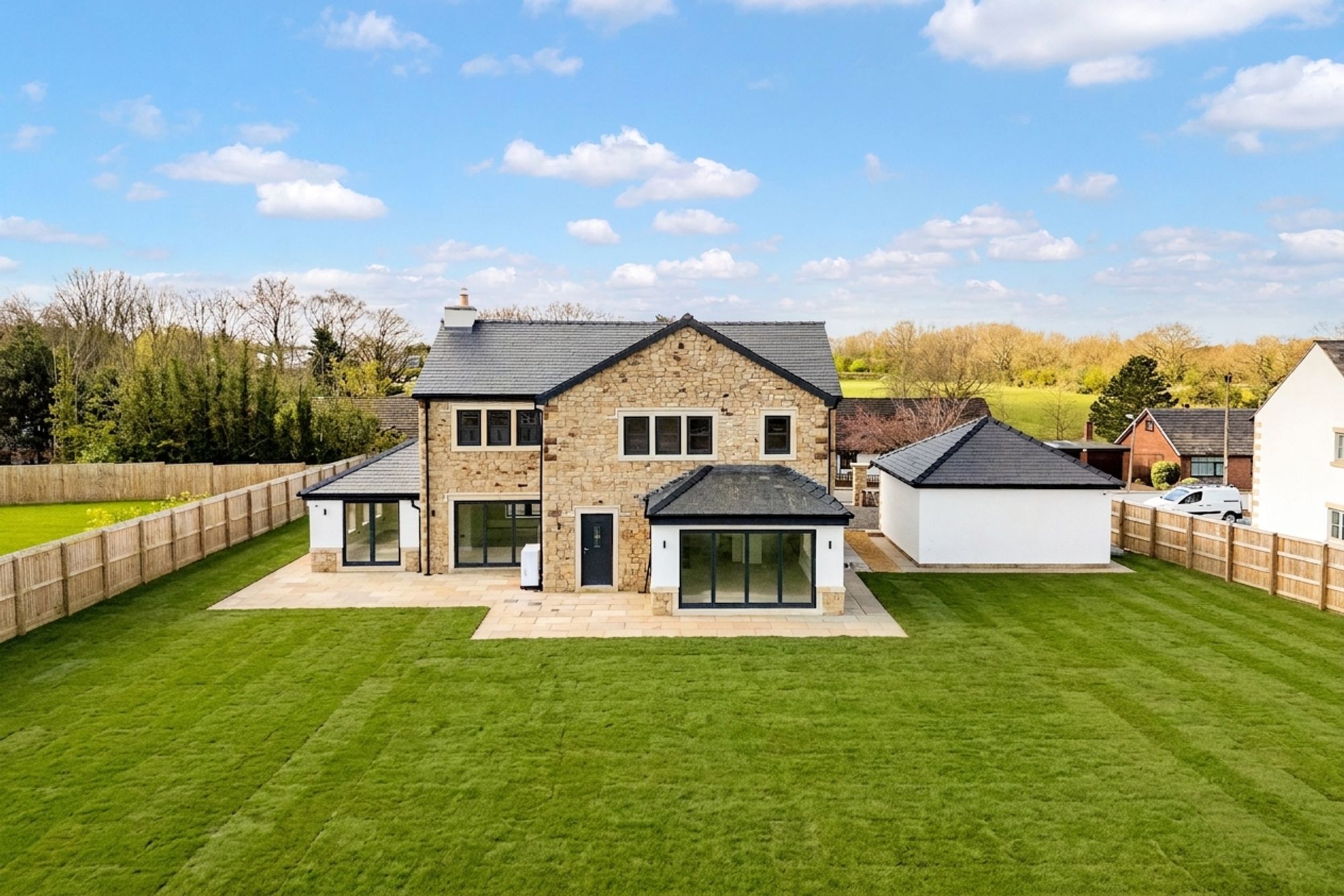 "A contemporary four bedroom, 2920 sq ft stone country house on two thirds of an acre, with luxury finishes, four en suites, double garage and village edge setting in Mawdesley."