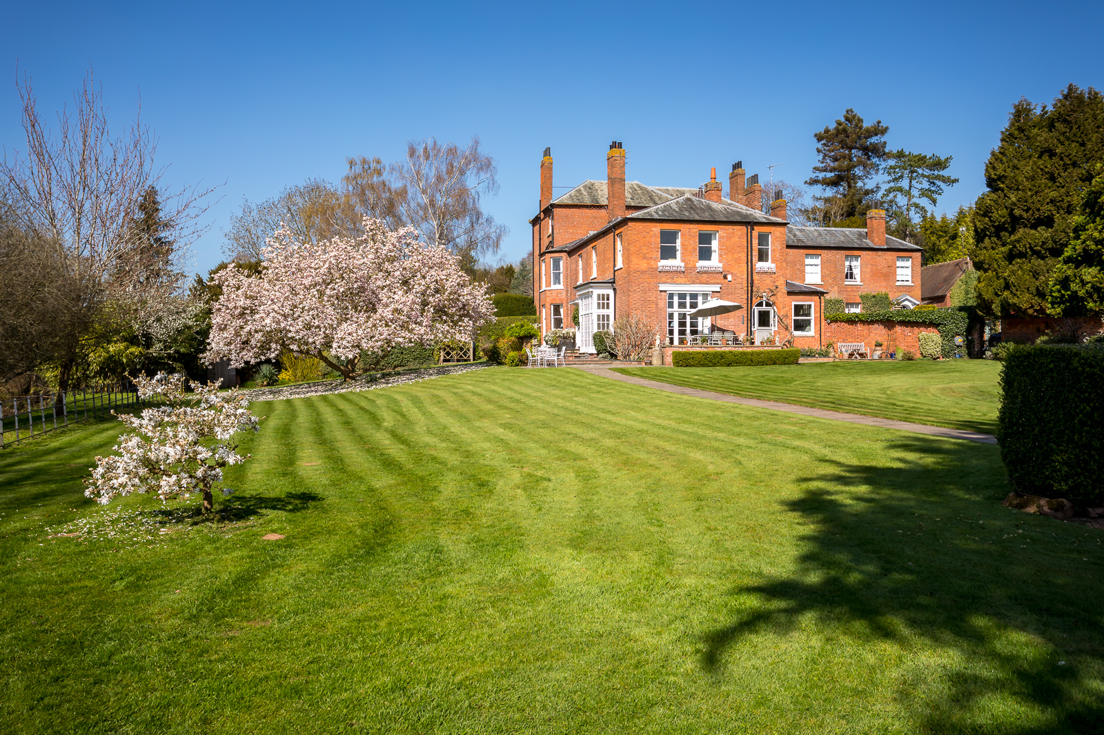 Outside, the fabulous formal landscaped gardens stretch down your very own private slice of the riverbank, a nature superhighway – sit quietly and watch the natural world through the seasons. G&T on the terrace, croquet on the lawn – this is more than a house – it is a lifestyle. The perfect escape in a stunning south facing rural setting. To reassure – the house has never flooded.