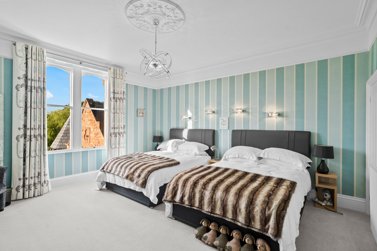 Upstairs, the accommodation is both generous and practical. The master bedroom is a true retreat, complete with its own en-suite, offering privacy and indulgence at the end of each day. Three further bedrooms provide space for children, guests or flexible use, all served by a large and well-appointed family bathroom designed to meet the demands of modern family life.