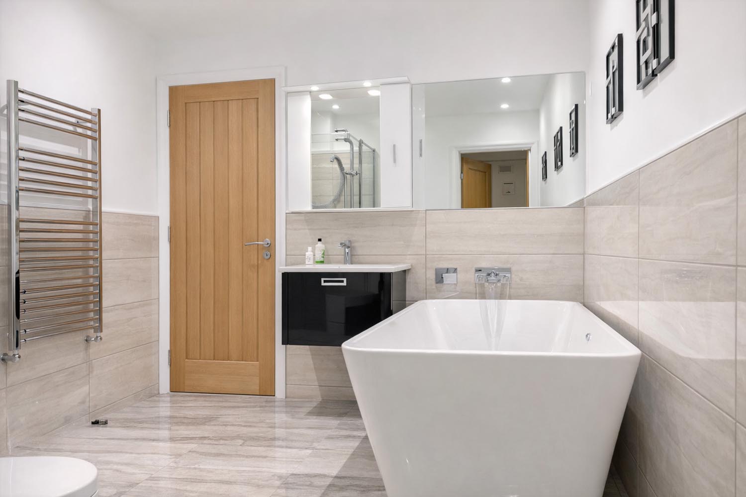 Throughout the property, modern construction and high quality finishes contribute to comfort and efficiency. Underfloor heating is powered by an air source heat pump system, while thermally efficient construction ensures the house remains warm and economical to run throughout the year.