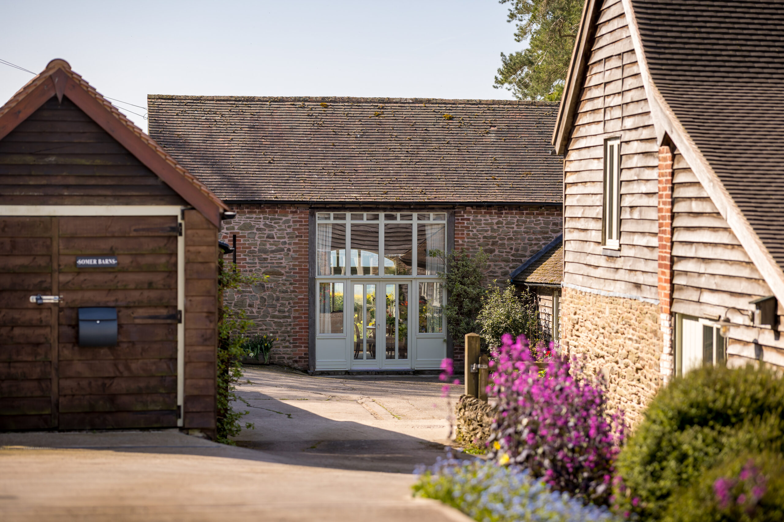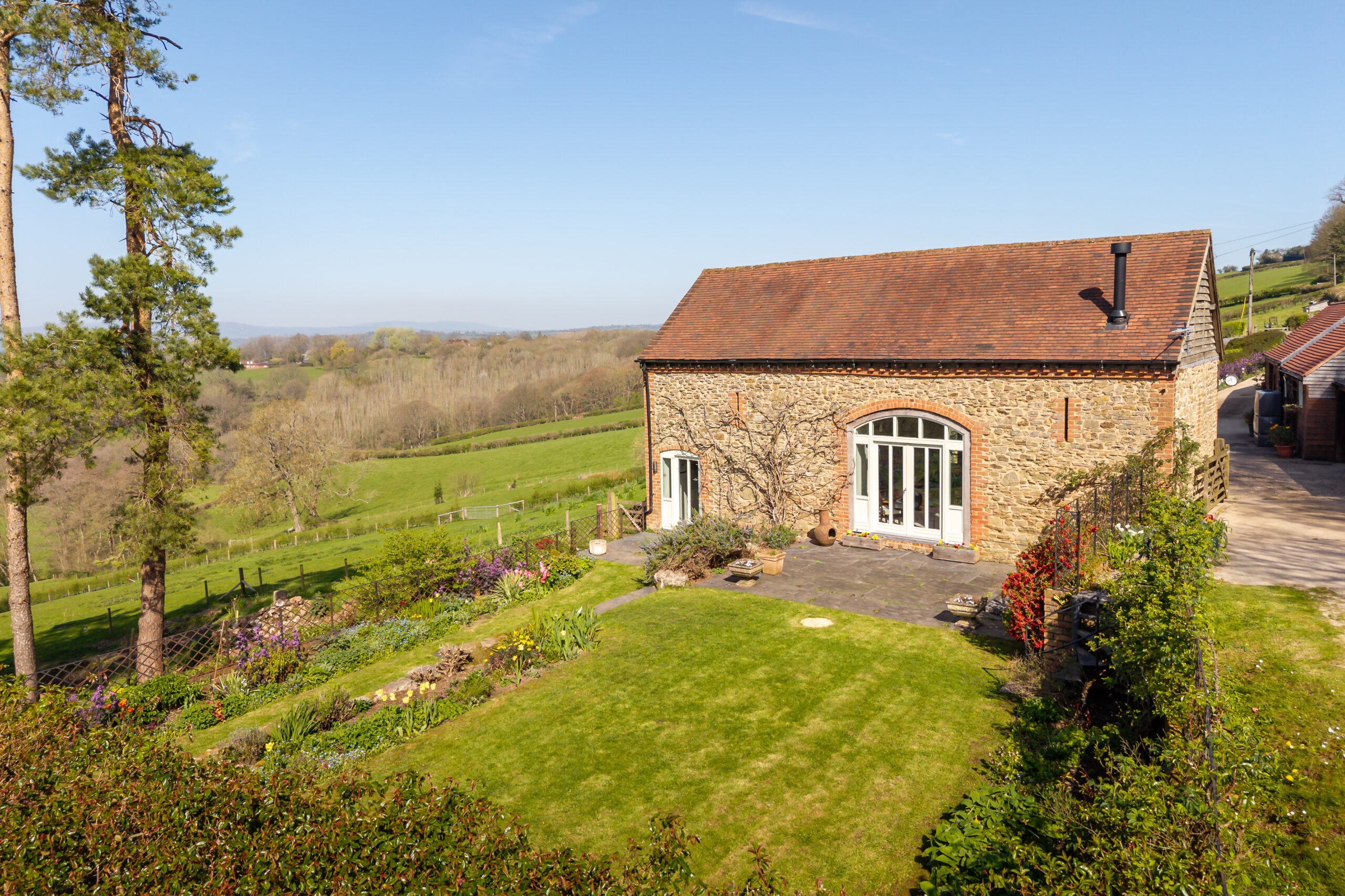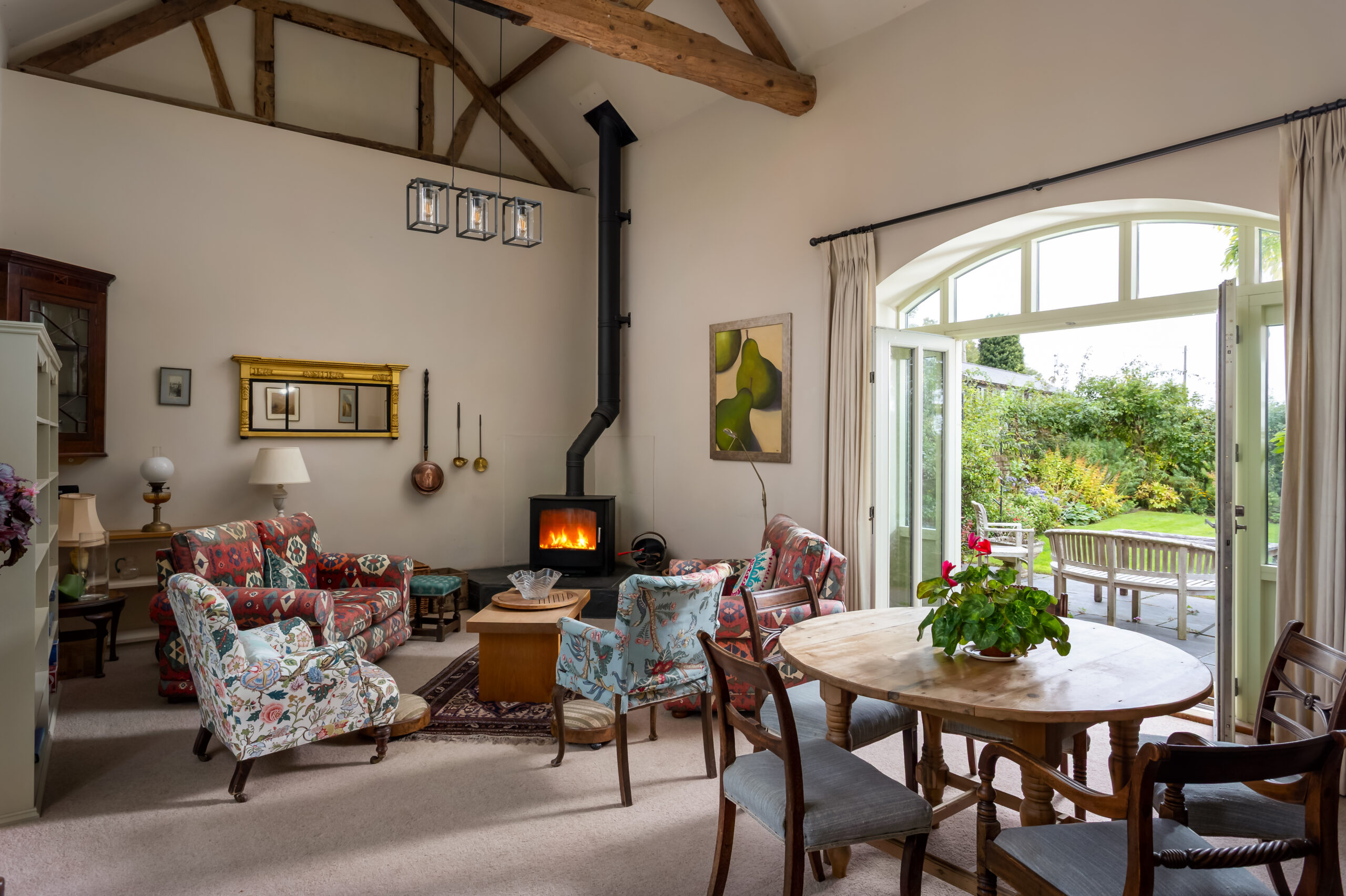 Set in a peaceful rural location, Somer Barns offers a beautifully converted detached barn with spectacular views, approaching 6 acres of land including formal gardens, a productive kitchen garden, paddock, and versatile outbuildings – ideal for a home office or studio.