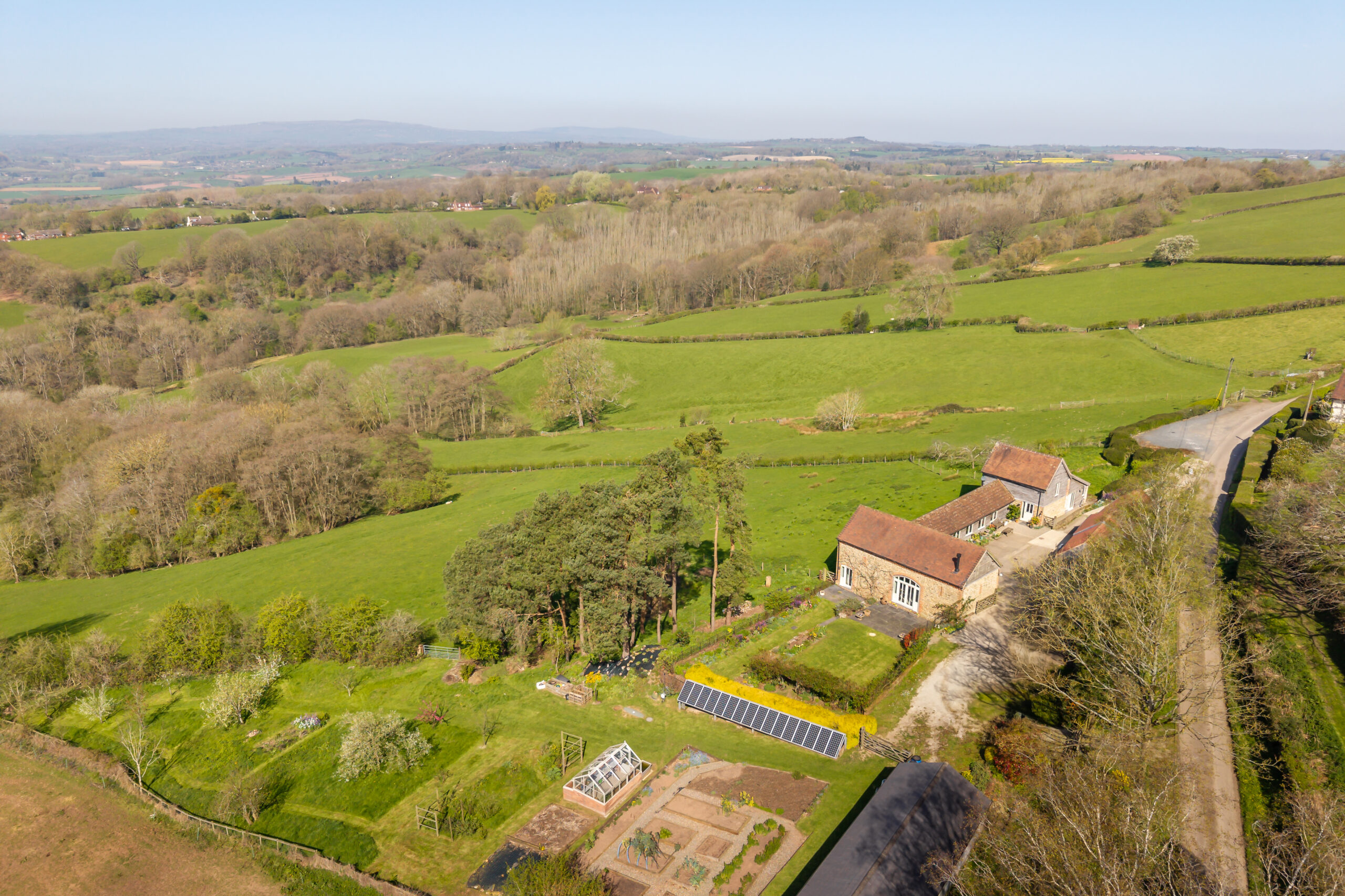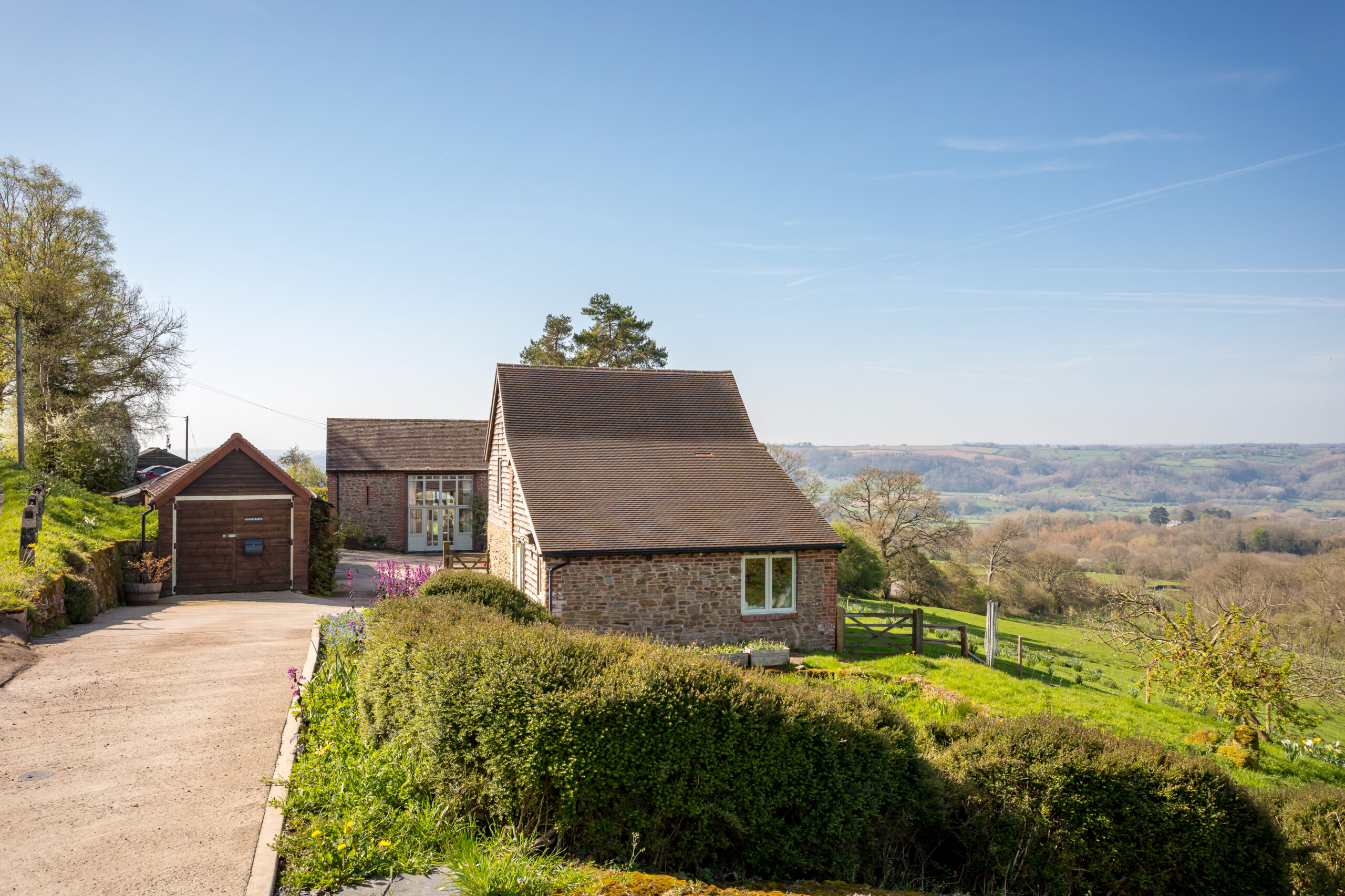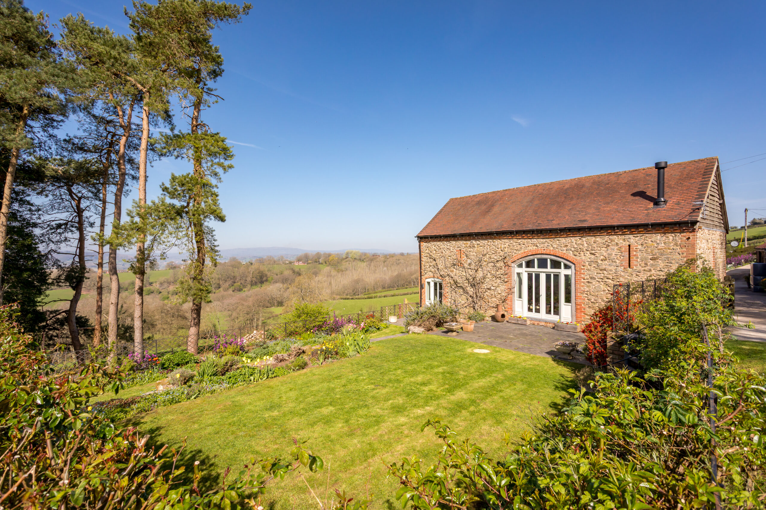 "Panoramic Teme Valley vista - stunning sunsets come as standard - fine period detached barn conversion, peaceful rural setting, versatile outbuildings including home office, pretty gardens, productive kitchen garden and paddock - in all approaching 6 acres. "