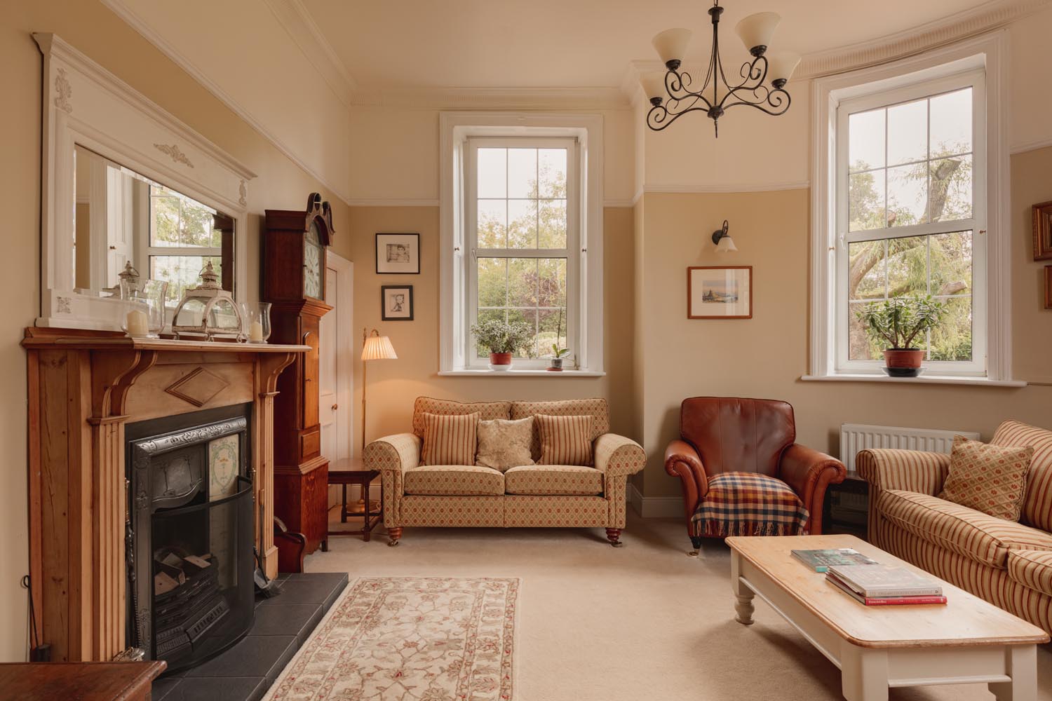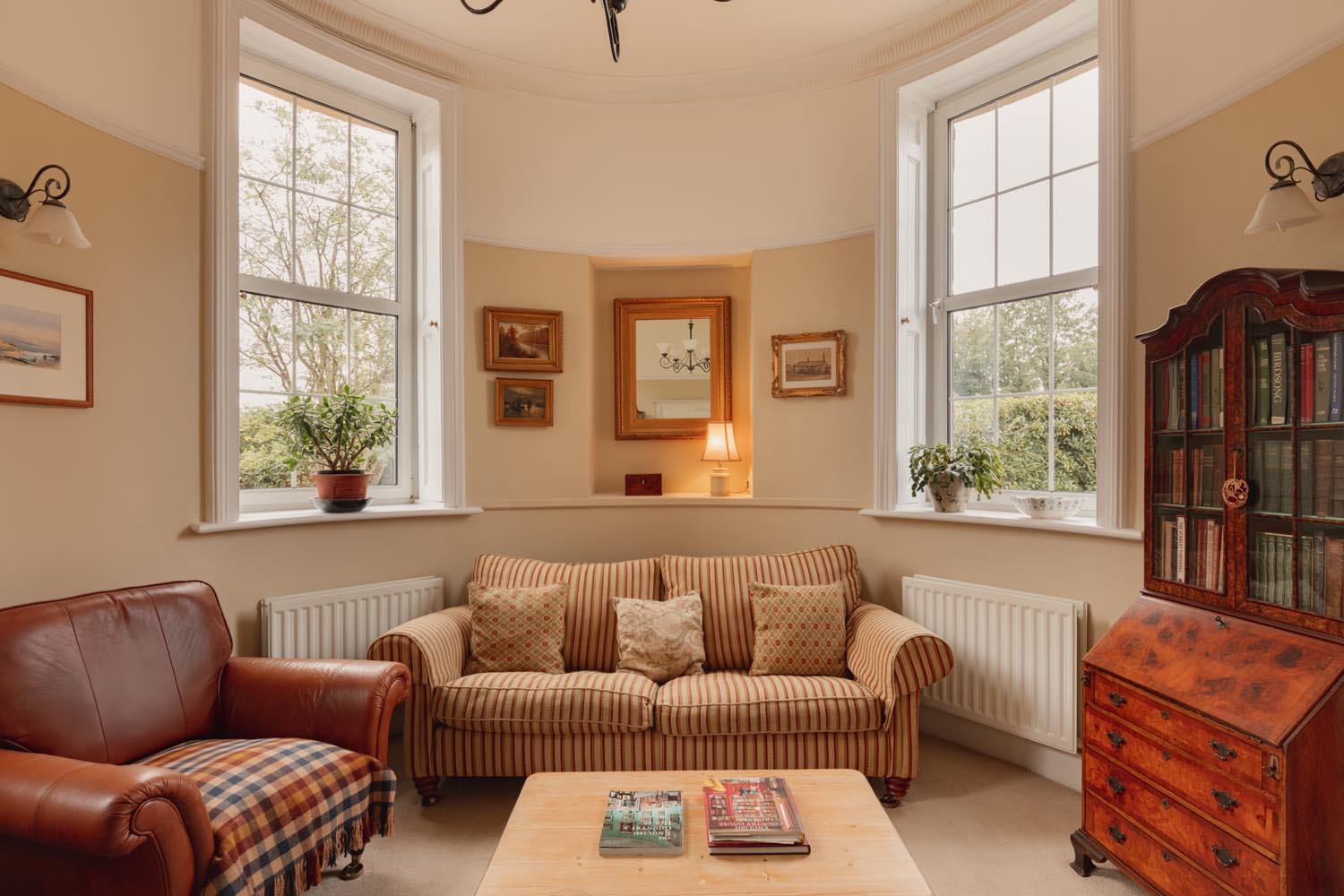 Station House is a handsome Grade II Listed sandstone property built circa 1835 and carefully maintained and thoughtfully upgraded to suit modern living while keeping its period character. The sandstone façade presents refined Georgian symmetry and proportion, distinguished by a semi-circular bay that signals the quality of the architecture and adds elegance and presence. All accommodation is arranged on one level, giving the house a calm, airy flow. Tall sash windows, generous ceiling heights and considered finishes create an elegant setting, with the oldest part of the house enjoying impressive tall ceilings and soaring Georgian windows that flood the rooms with natural light, amplifying the sense of space. The plan runs with clarity, with four well-proportioned bedrooms arranged off a central hall, supported by versatile reception spaces and a well-specified kitchen.