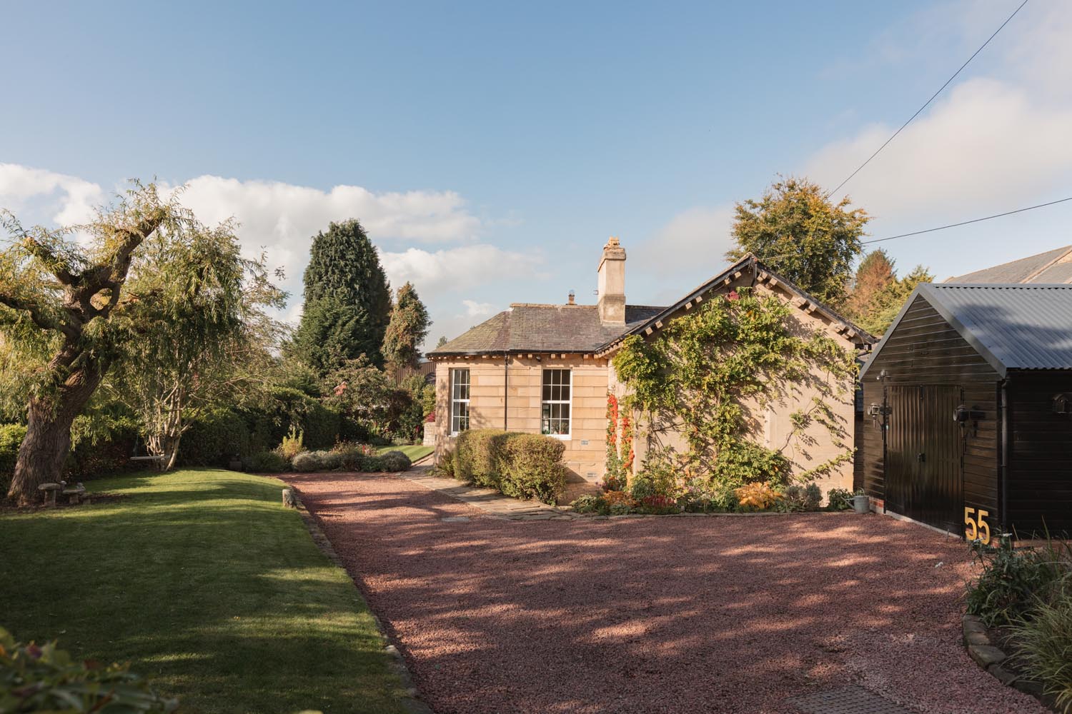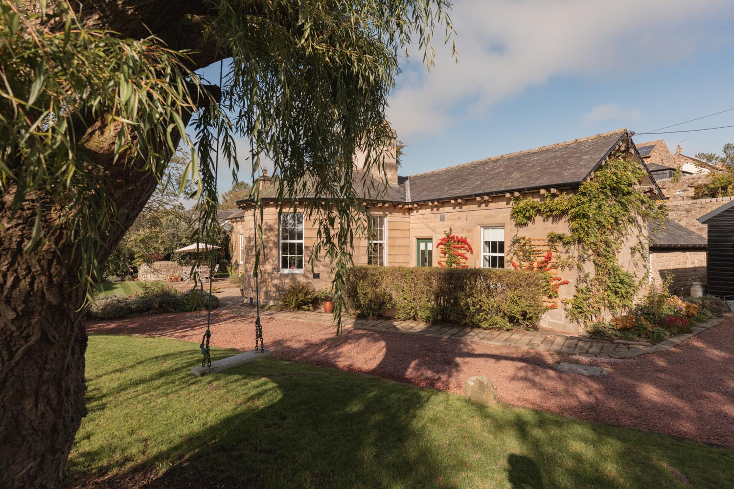 "An elegant Grade II Listed sandstone house with wrap around gardens and a sweeping private drive"
