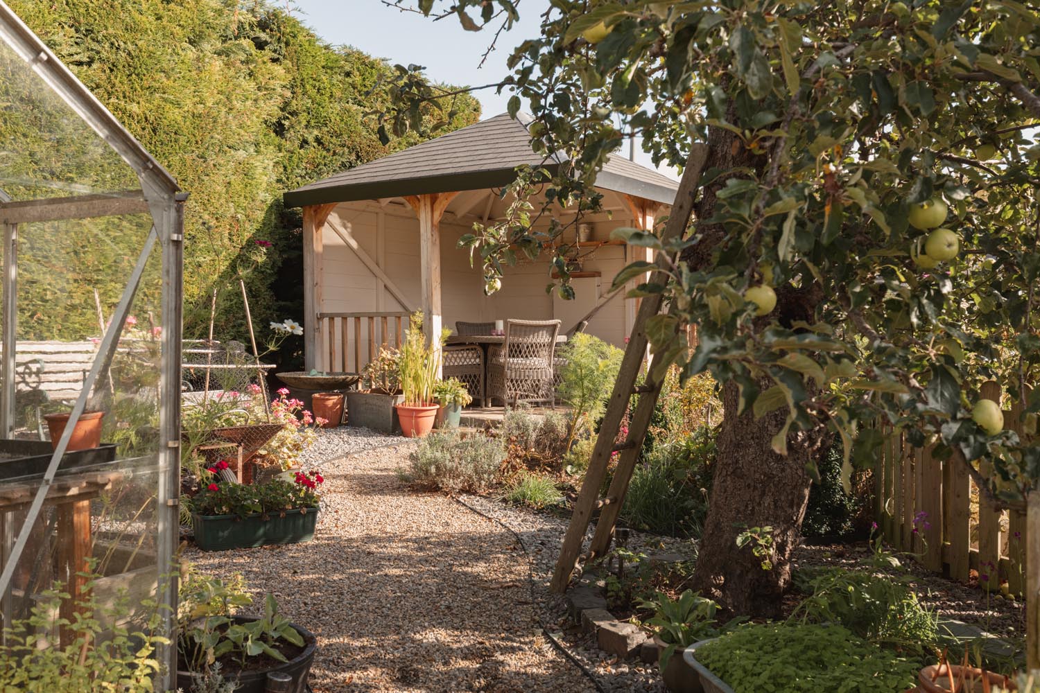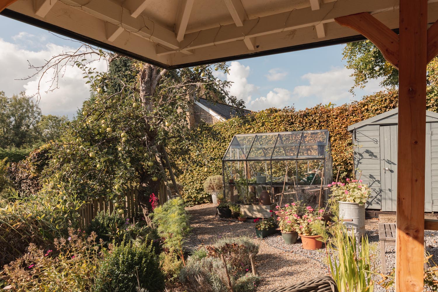 A sweeping gravel drive leads to the house and on to a detached garage with adjoining workshop. The gardens wrap around the property and are designed for easy enjoyment, level lawns edged by established hedging for privacy, a broad stone terrace for outdoor dining, and seasonal colour from well stocked borders. A sheltered summer pavilion sits within a productive corner near the greenhouse and fruit trees, with additional outbuildings providing a spacious, separate laundry away from the house, and a boiler room. The arrangement delivers attractive outlooks from the principal rooms together with practical amenity for day to day living and relaxed entertaining.