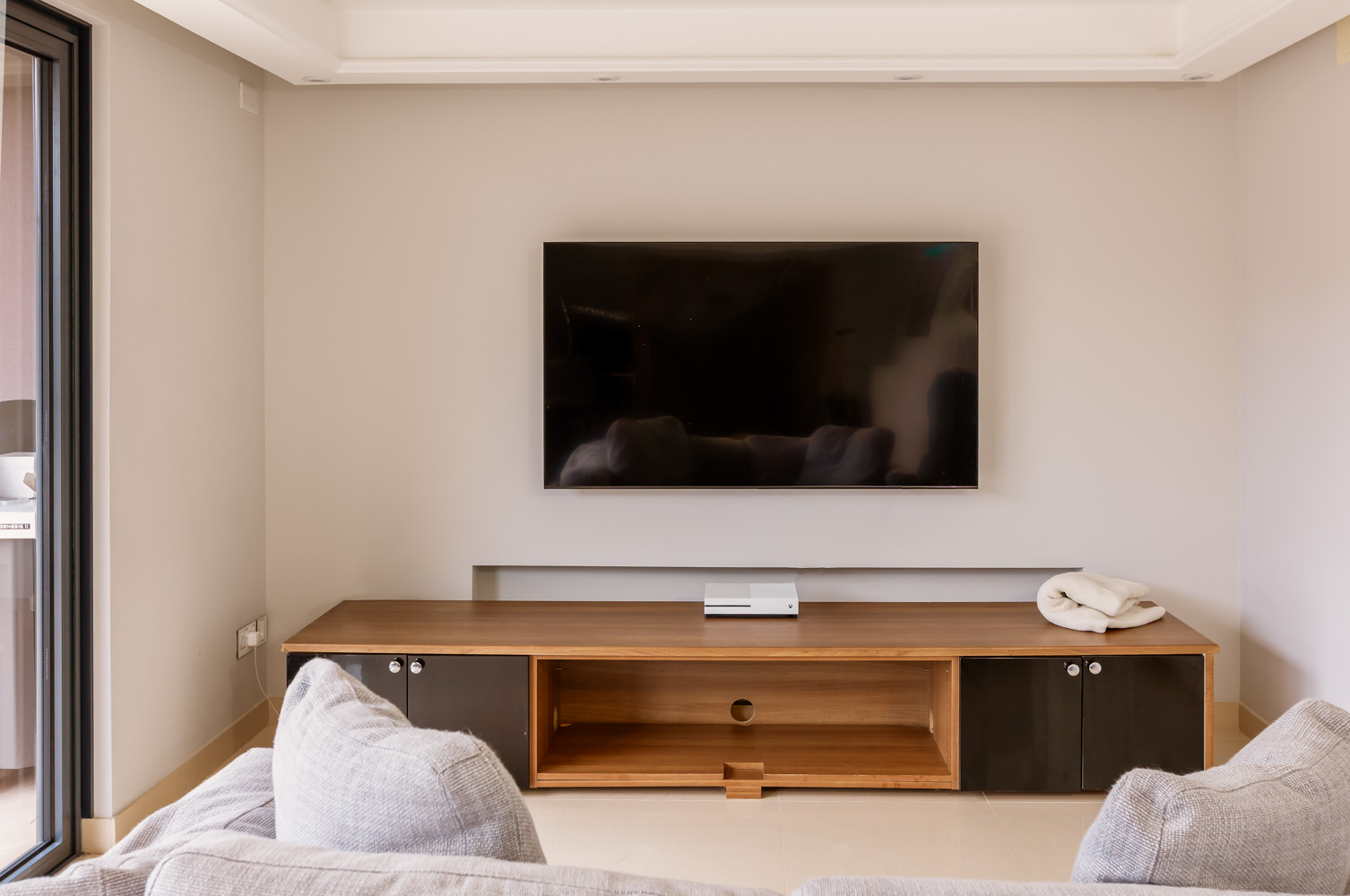 Arranged across three floors and just over 7,500 square feet, the layout is confident and considered. The ground floor is where the house makes its most dramatic statements. A cinema room with Sony 4K projection, a 10 foot silver screen and a star light ceiling sits alongside a games room that opens directly to the garden through sliding glass doors, an easy transition from film to friends to fresh air. The reception room beyond is calm by comparison, built around a gas ribbon fire and a Zuma audio system that carries sound through the house with the kind of quiet precision the rest of the interior demands.