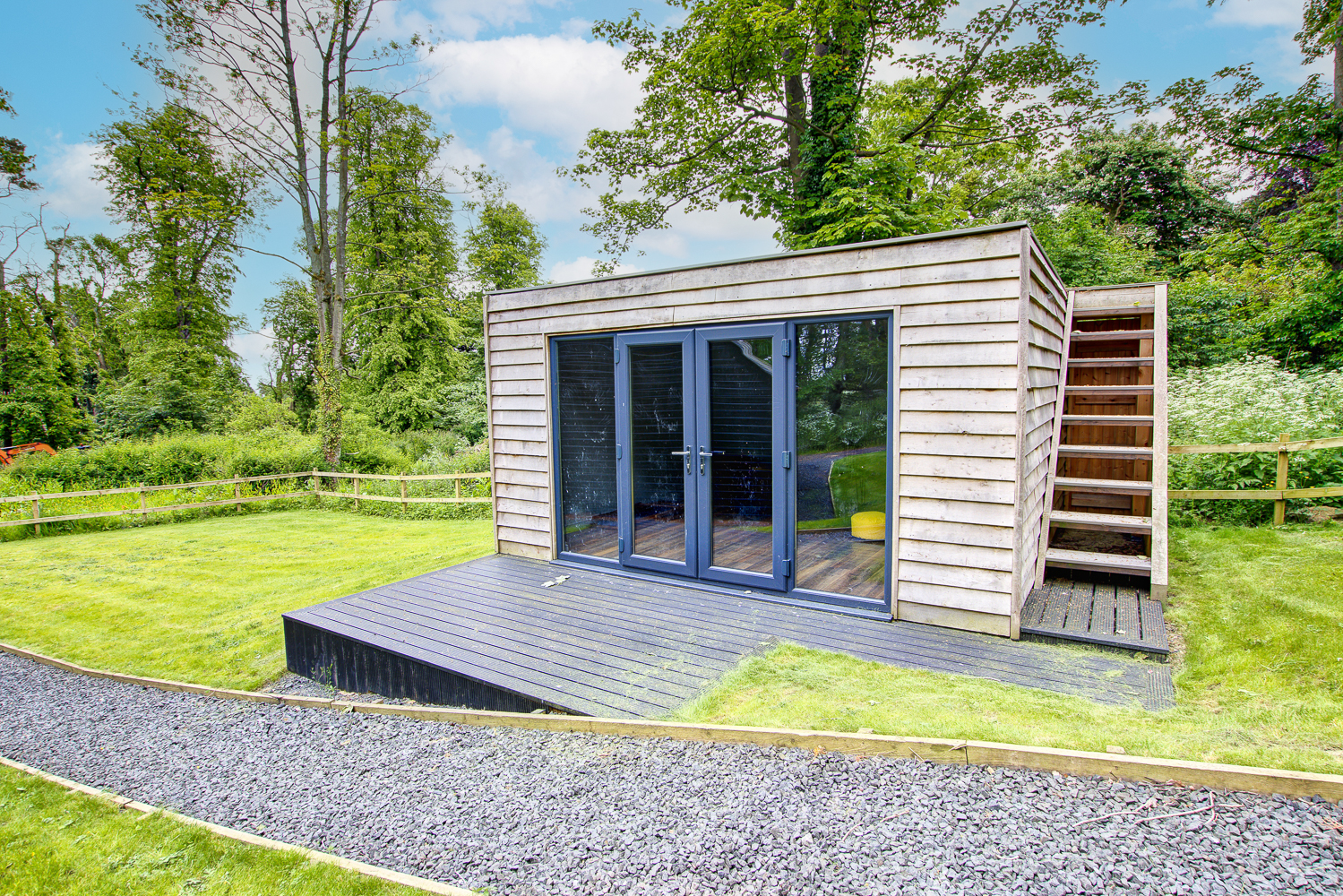 The amin gardens sit to the east of the house across the driveway, with the garden plot extending to around 0.36 acres. The gardens are mainly laid to lawn for ease of maintenance, with established trees to the boundaries offering privacy. To one side is a substantial summerhouse with decked seating area to the front and access to the roof. The double garage sits to one side of the garden.