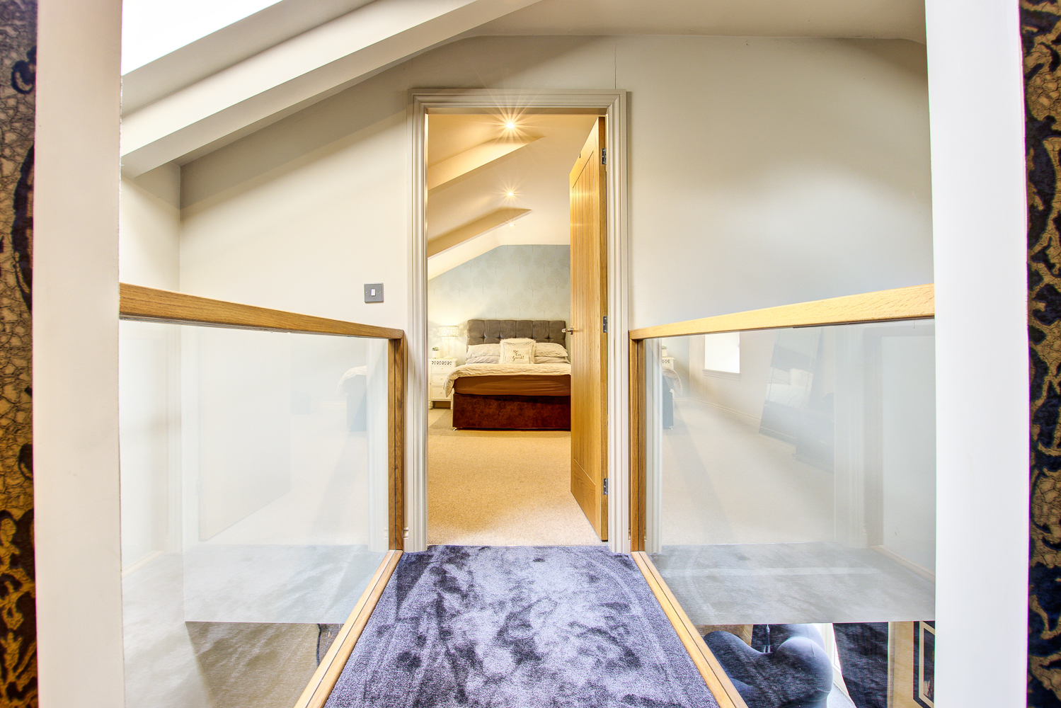 Stairs rise to the first floor and the bedroom accommodation. The landing runs centrally and at one end is the stylish galleried section looking down on both sides to the sitting room. The principal suite incorporates a fabulous bedroom, shower room, separate WC and walk-in wardrobe. A cleverly designed window displays the internal workings of the grand old clock for a unique touch. The shower room is finished in a boutique style and is complemented by a separate WC. The huge walk-in wardrobe has an abundance of hanging and storage space. The bedroom at the opposite end of the house also has a high specification en-suite shower room. There are two further bedrooms including one with an interesting gallery at one end above the sitting room. These bedrooms are served by a lovely bathroom with contemporary freestanding bath, wash hand basin set in a vanity unit and WC, all wrapped in superb tiling.