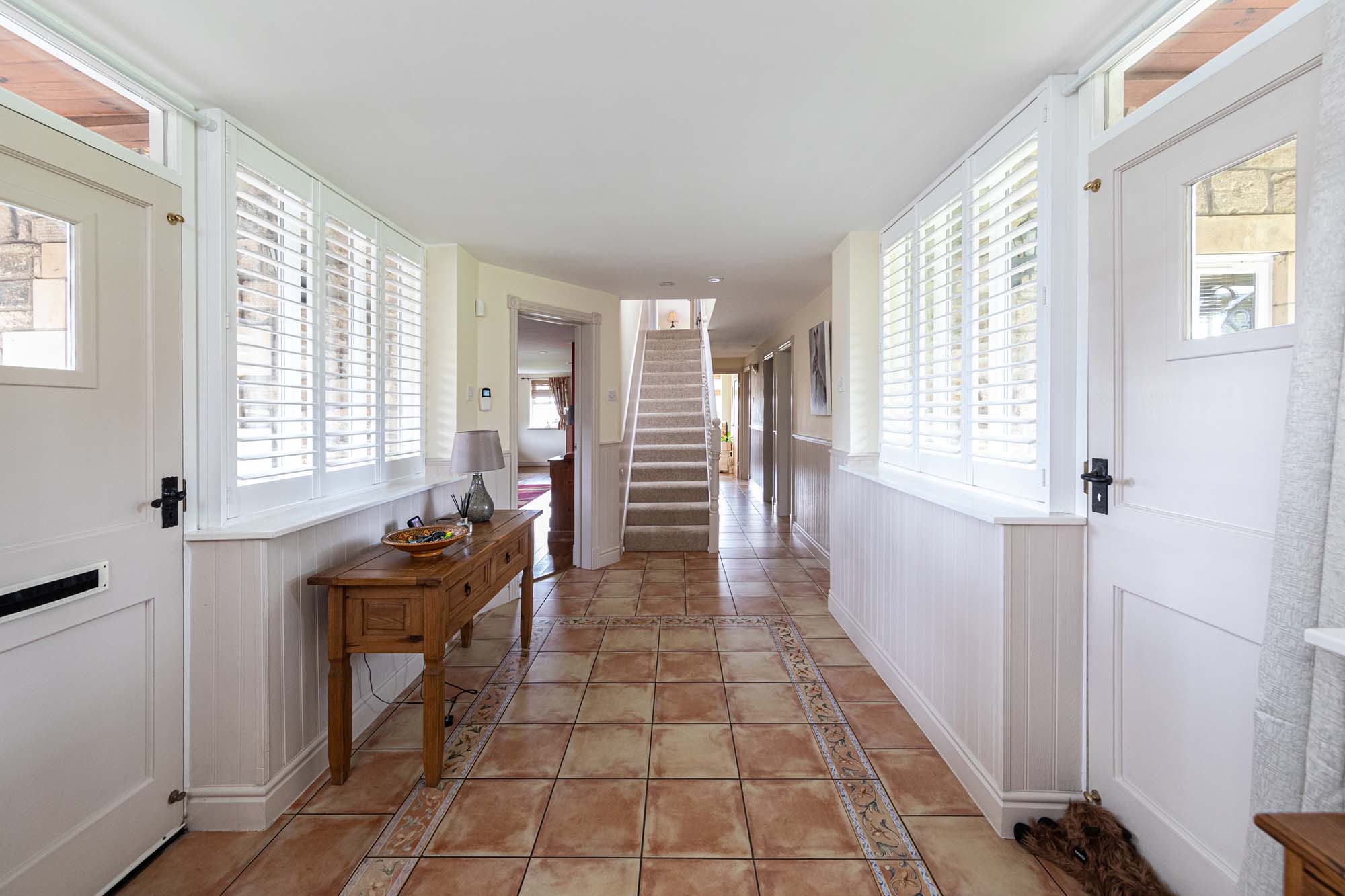 Distinguished by its traditional stone construction and unique surrounding veranda, The Dairy was originally an 18th-century creamery. Thoughtfully converted and updated, it now provides well-proportioned accommodation spread over two levels. Entry is through a unique double-aspect hallway that neatly divides the living areas, featuring traditional shutters and an additional door for rear access.