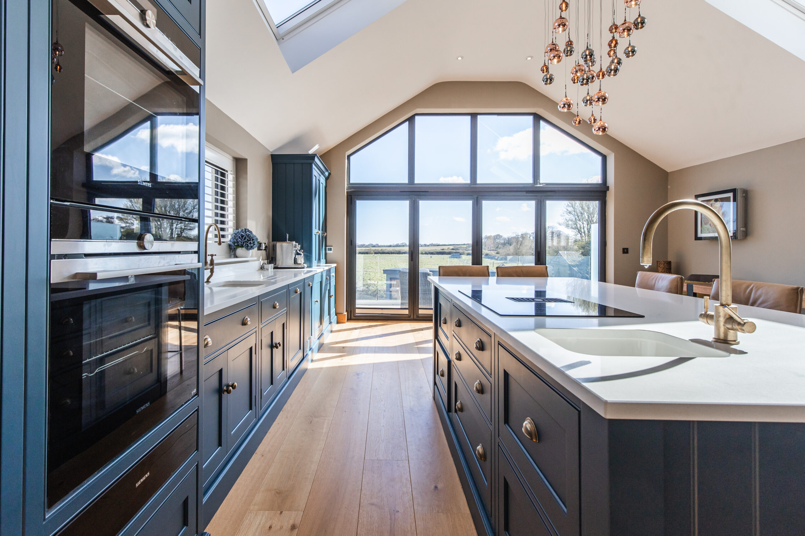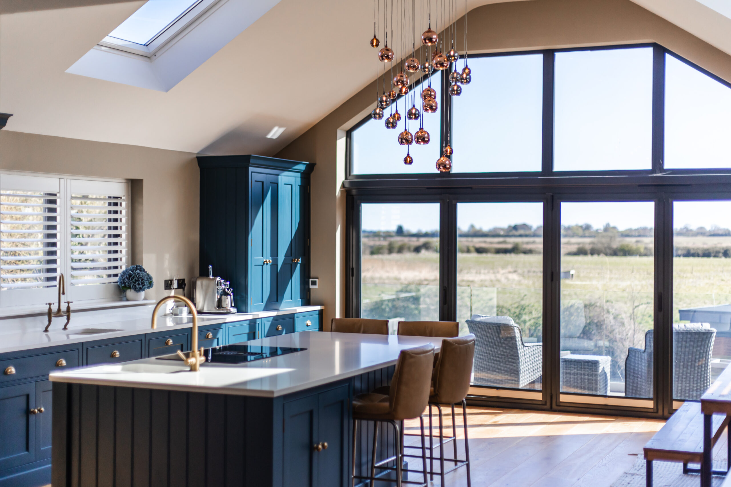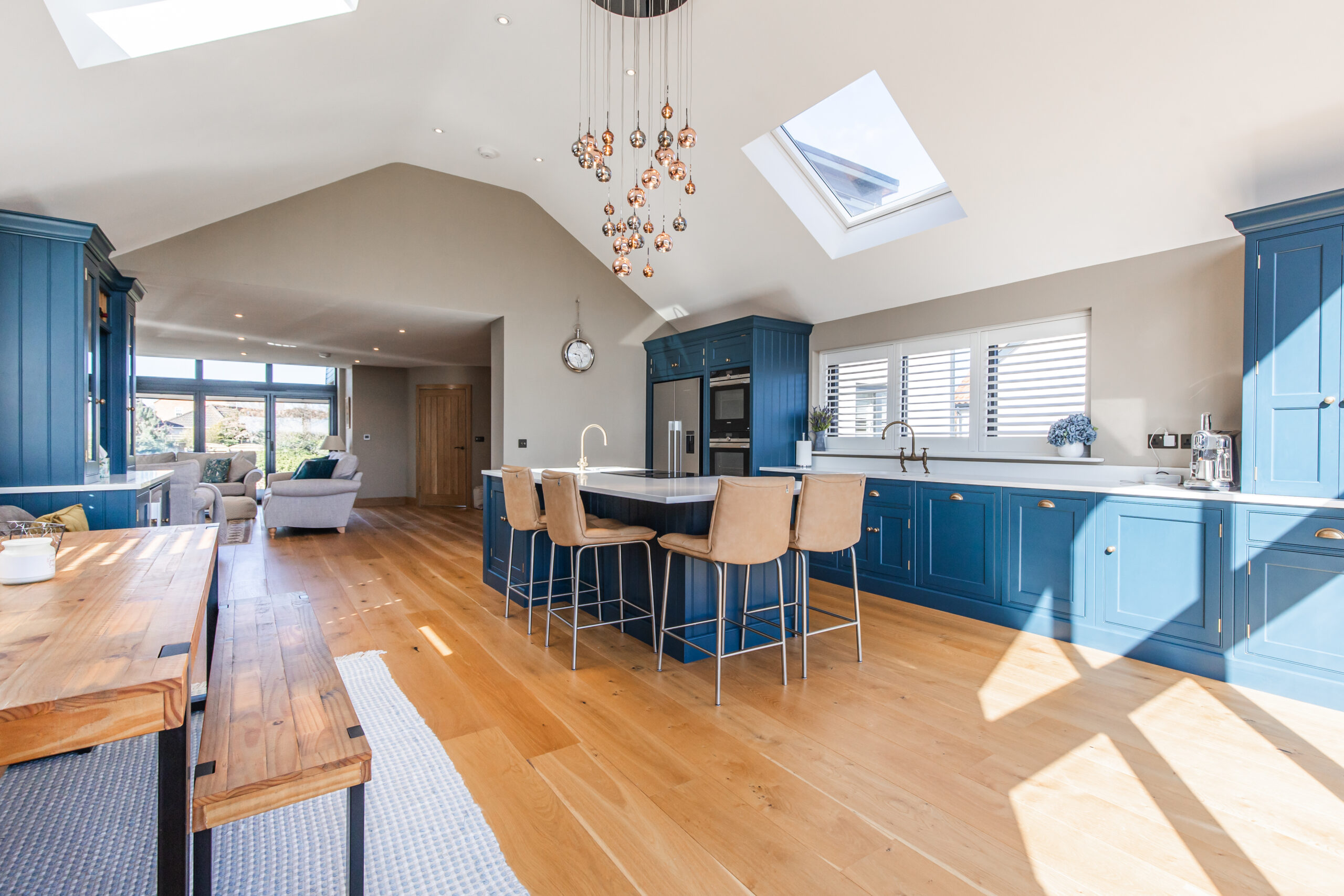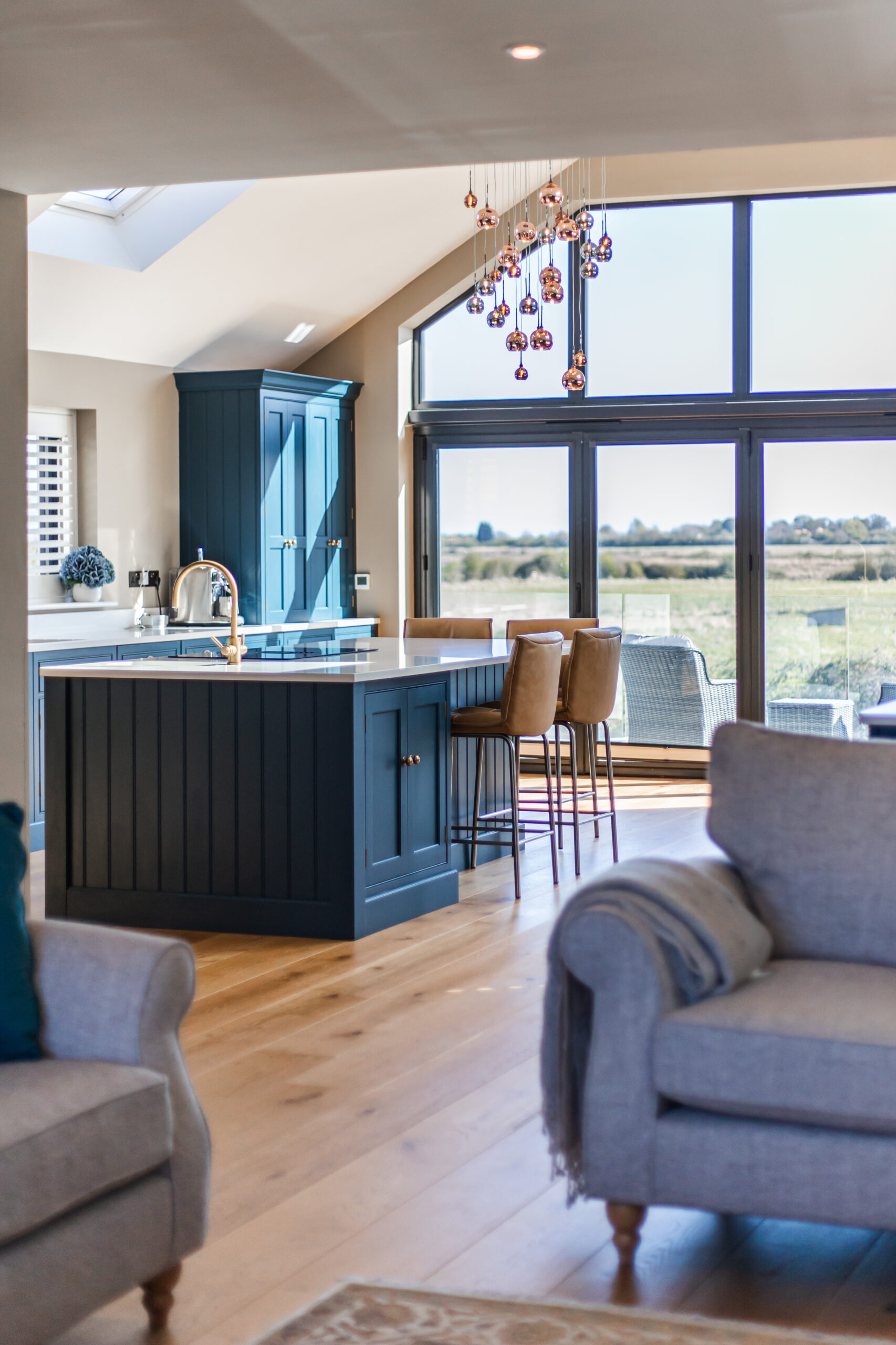 Finished to an impeccable standard throughout, the home has been thoughtfully designed to maximise space, light, and comfort. At its heart is a stunning open-plan family room on the first floor – perfect for entertaining or relaxing with loved ones. The sleek contemporary kitchen, with its generous island and high-end appliances, flows seamlessly into a spacious dining and lounge area. Sliding doors open onto a large balcony with uninterrupted views over peaceful open farmland – ideal for morning coffee or evening sunsets. A cosy wood-burning stove adds warmth and charm during the cooler months.