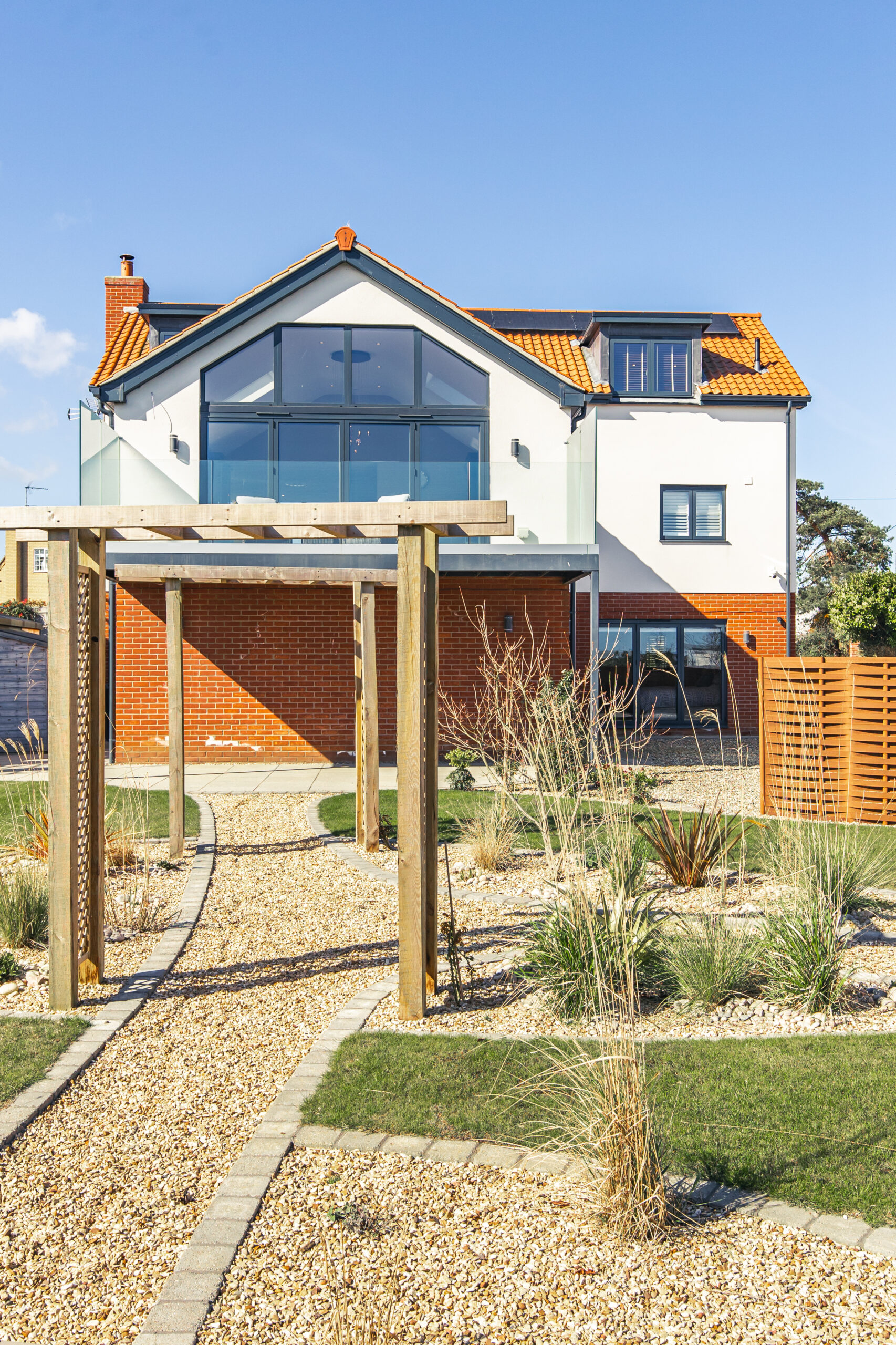 "Striking 4-bed, 3-storey home in Old Hunstanton near beach and golf, with open-plan living, balcony views, landscaped garden, garden room, garage and luxury finishes - coastal living at its finest."