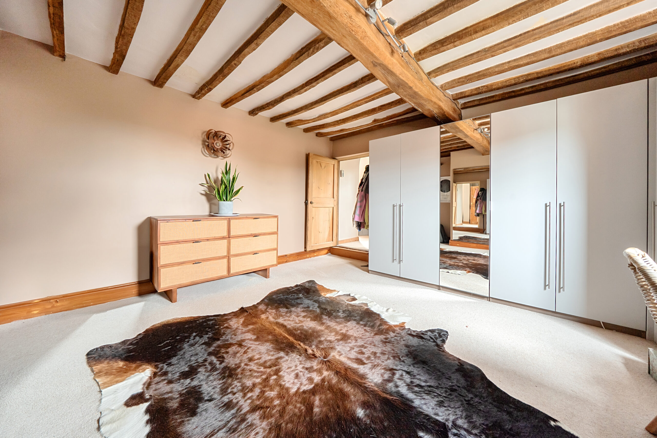 The first floor continues the theme of generous proportions and thoughtful layout, providing three well-sized bedrooms. The principal suite is particularly noteworthy, offering a substantial bedroom complemented by a dedicated dressing room and en suite facilities as well as a balcony offering far reaching views. The remaining bedrooms are all of excellent size and are served by a well-appointed bath and shower room, ensuring comfort and convenience.