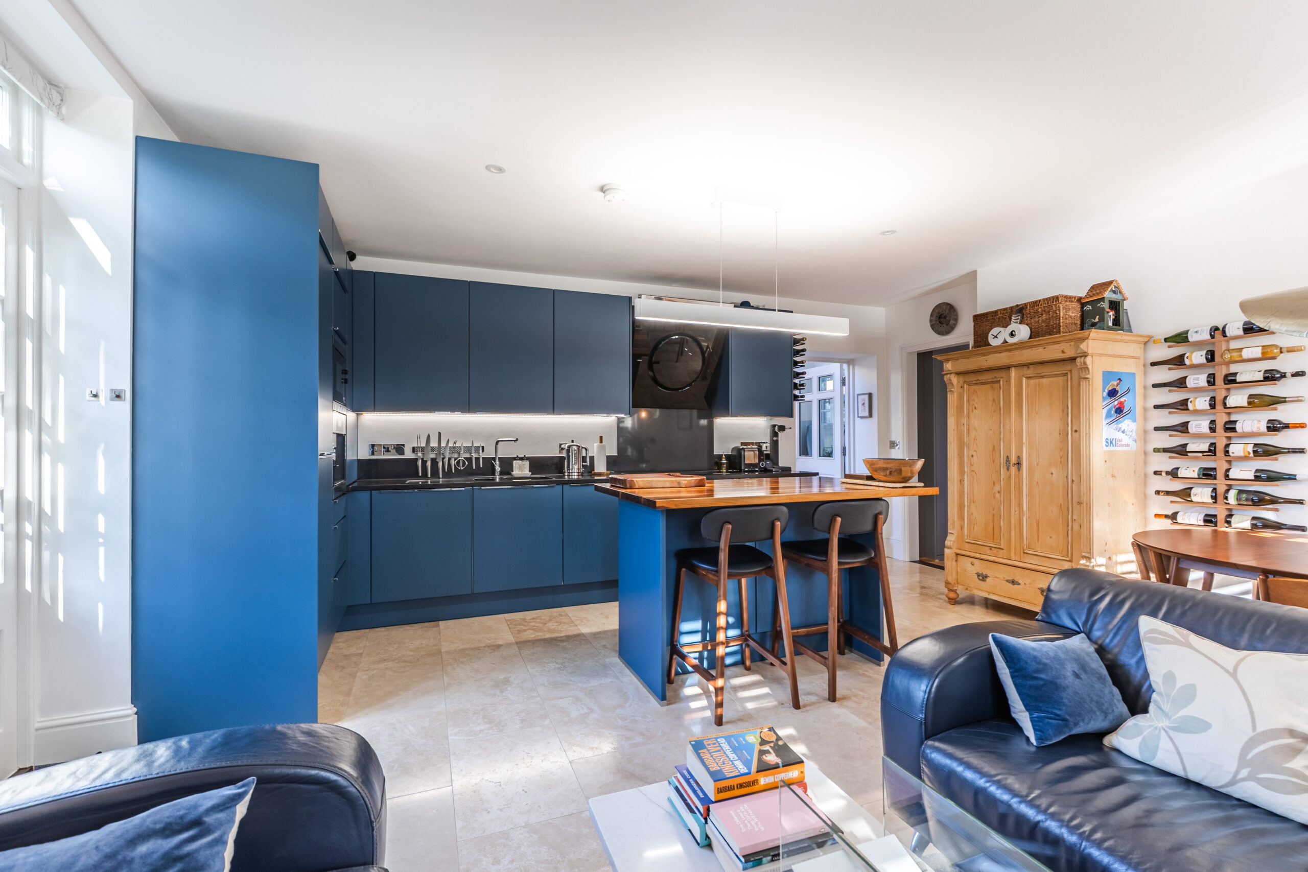 The home continues to impress with a generous open-plan entertaining room, seamlessly combining kitchen, dining and living space – ideal for hosting friends and family or simply enjoying day-to-day living in a wonderfully sociable setting.