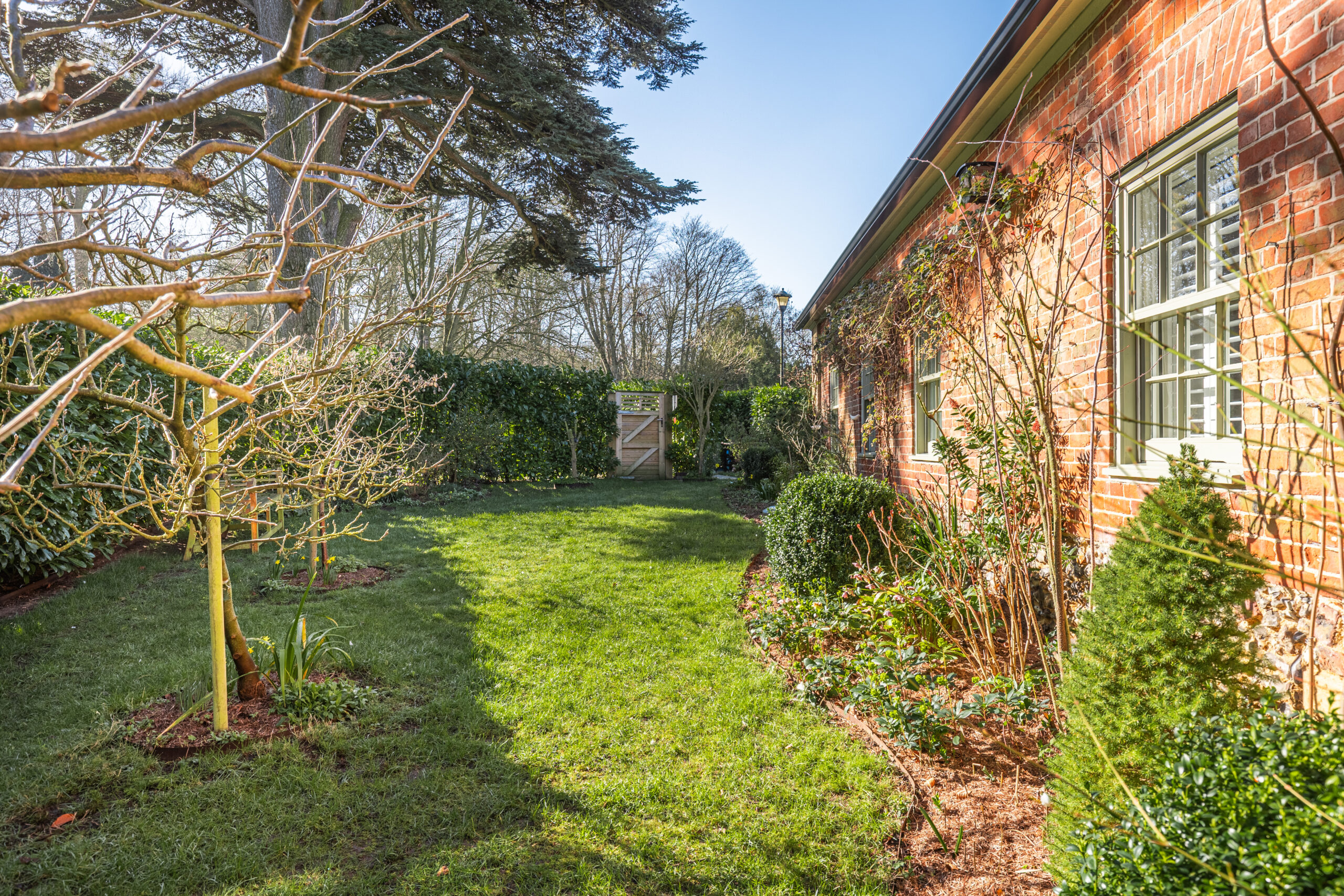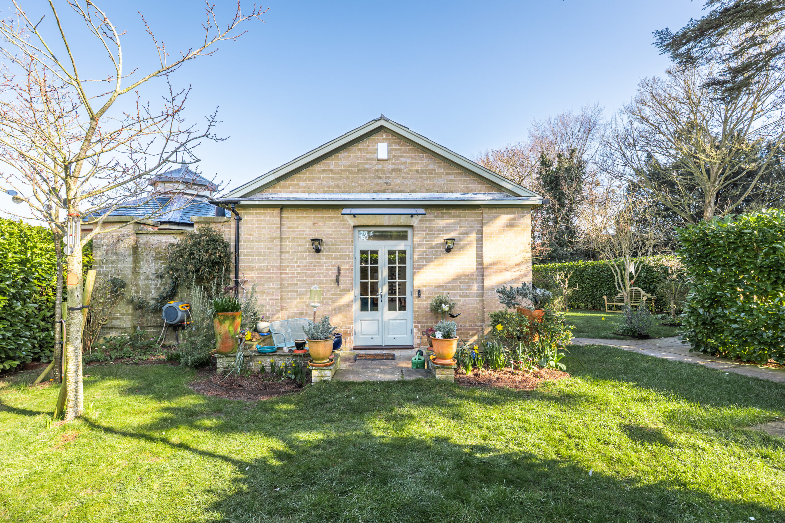 Outside, the property enjoys its own private garden, along with access to approximately two and a half acres (STMS) of beautifully maintained communal grounds within the former Old Vicarage estate. These enchanting surroundings include woodland walks, sweeping lawns, tranquil ponds and a charming walled garden – creating a truly idyllic setting.