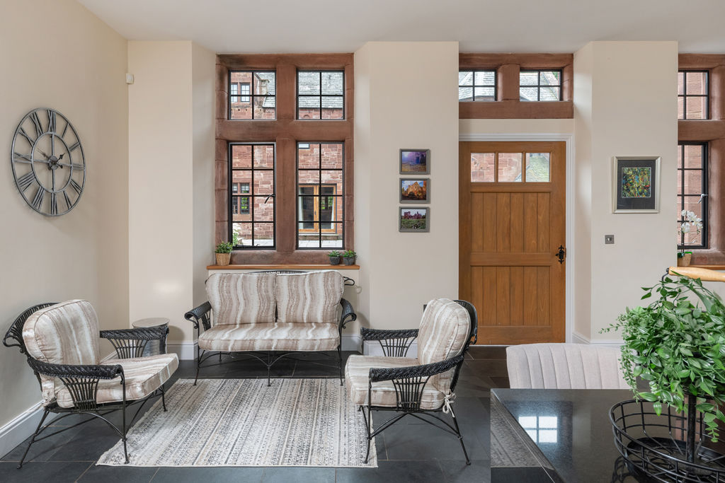 Originally part of the service buildings for a grand country house, The Stables has been comprehensively renovated and retains many original features, including sandstone facades, arched openings and exposed beams, all complemented by a generously proportioned interior finished to a high standard. Throughout, app-controlled underfloor heating ensures a consistently comfortable living environment, with slate flooring to the ground floor and carpets upstairs.