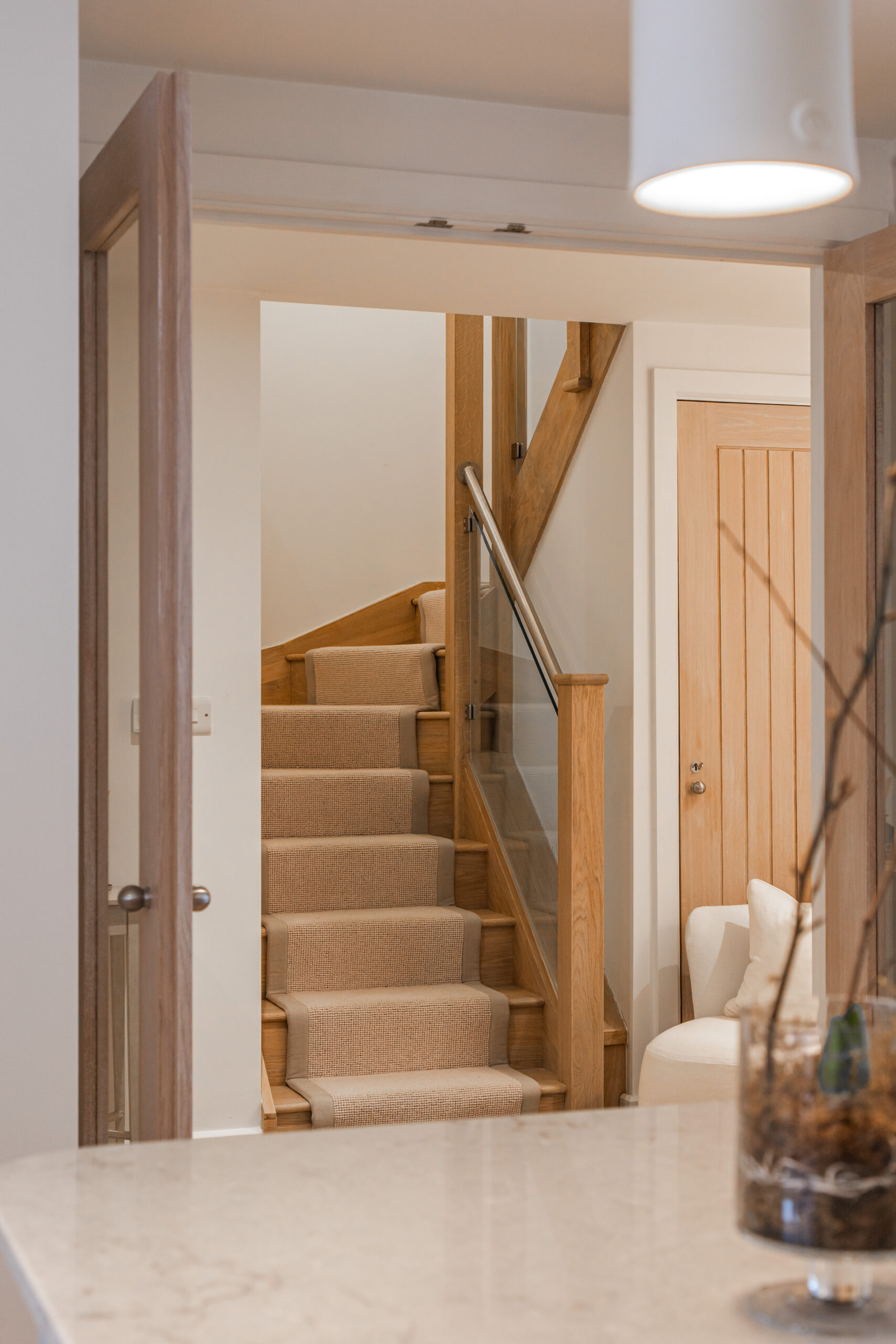 The property is entered via a spacious and welcoming hallway, immediately establishing the quality found throughout. Double glazed internal doors lead through to the principal living space, allowing light to flow while subtly defining the layout. The hallway also incorporates a fitted double cloak cupboard and a generous fitted linen cupboard, providing excellent storage while maintaining a clean, uncluttered feel.