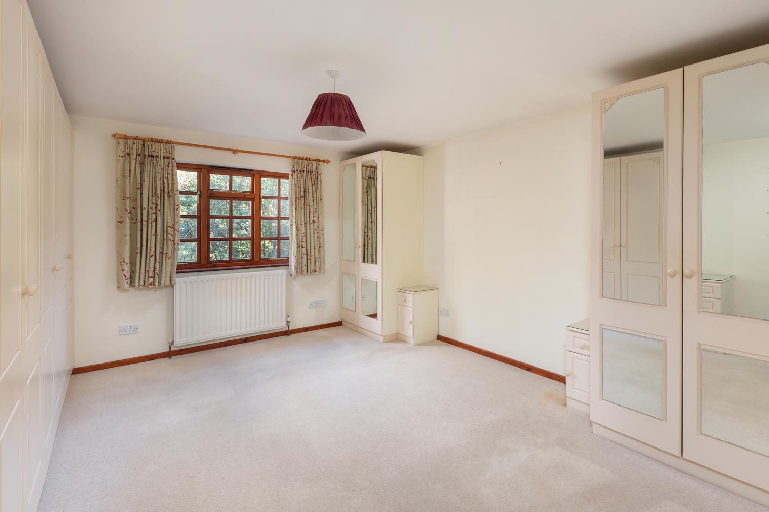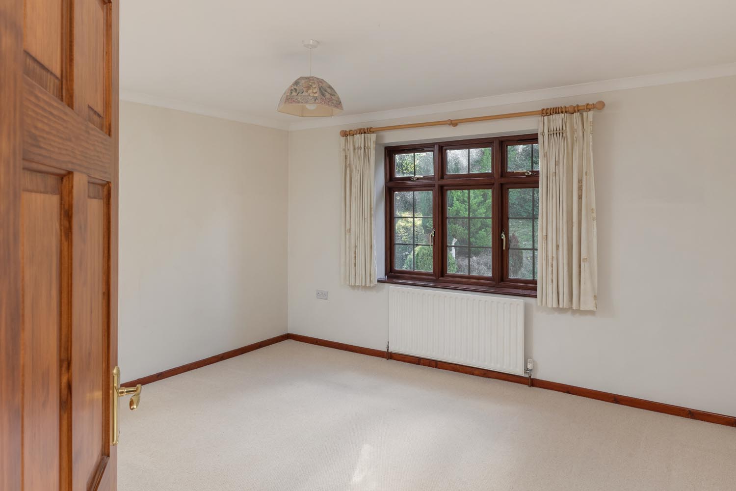Sleeping accommodation on the ground floor is thoughtfully zoned. A double bedroom to the front enjoys wide outlooks to the front garden. The smallest bedroom could work equally well as a study or home office, if desired. A further double bedroom to the rear benefits from extensive fitted wardrobes and shelving. The family bathroom is smartly finished with full tiling, a tub and a large corner shower cubicle. Additional storage is provided by a loft hatch off the hall.