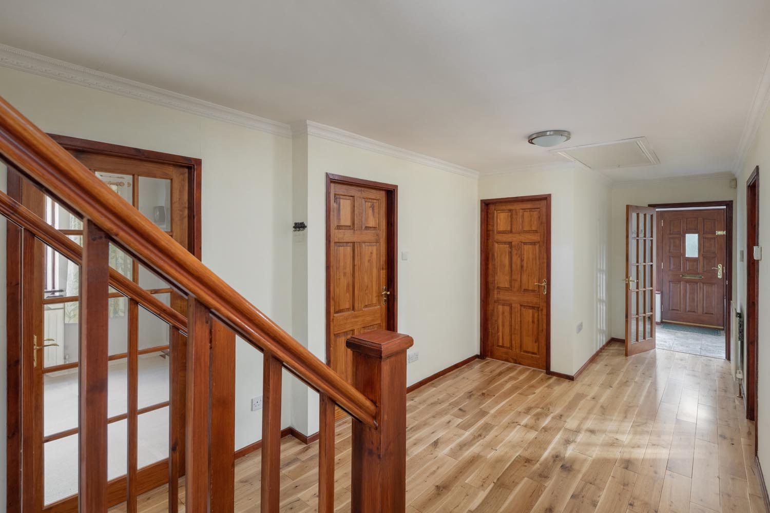 Thistledown stands on a mature corner plot along a stunning tree lined avenue of large, detached houses of varied styles within the highly sought-after Painshawfield estate in Stocksfield. The property offers versatile, carefully arranged accommodation in an attractive and convenient village setting, with a dormer conversion providing additional space on the first floor. Designed for day-to-day living with ample room to entertain, the layout includes two generous reception rooms, a breakfasting kitchen and three ground floor bedrooms served by a well-appointed family bathroom, with a further bedroom and shower room above. A detached double garage, ample parking and gardens on all sides frame the house beautifully.