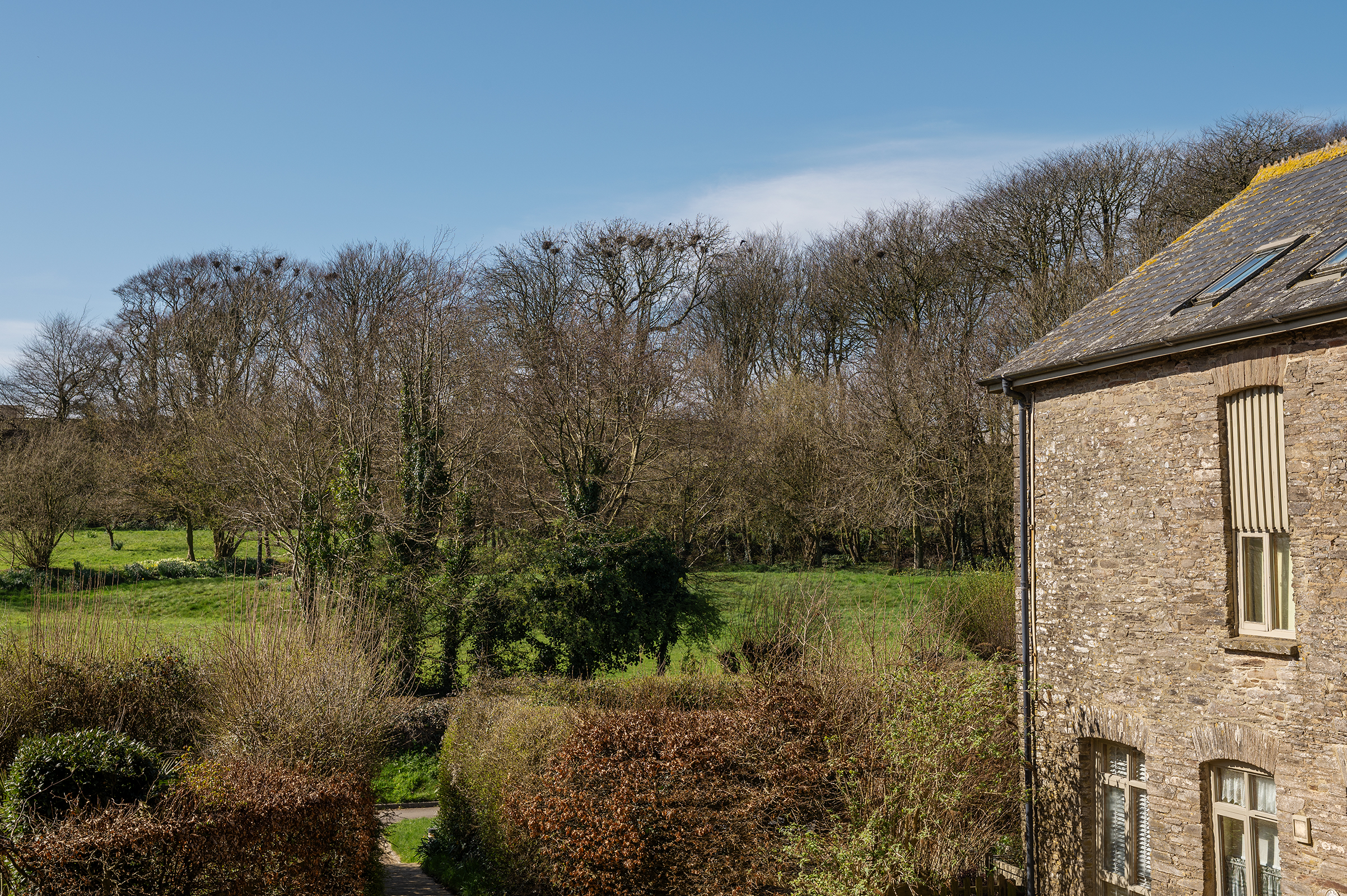 Across the landing, a separate West-facing Balcony captures the changing light across the day, offering a peaceful vantage point over the courtyard and surrounding greenery. A Study area on the landing provides a considered space for work or reading.