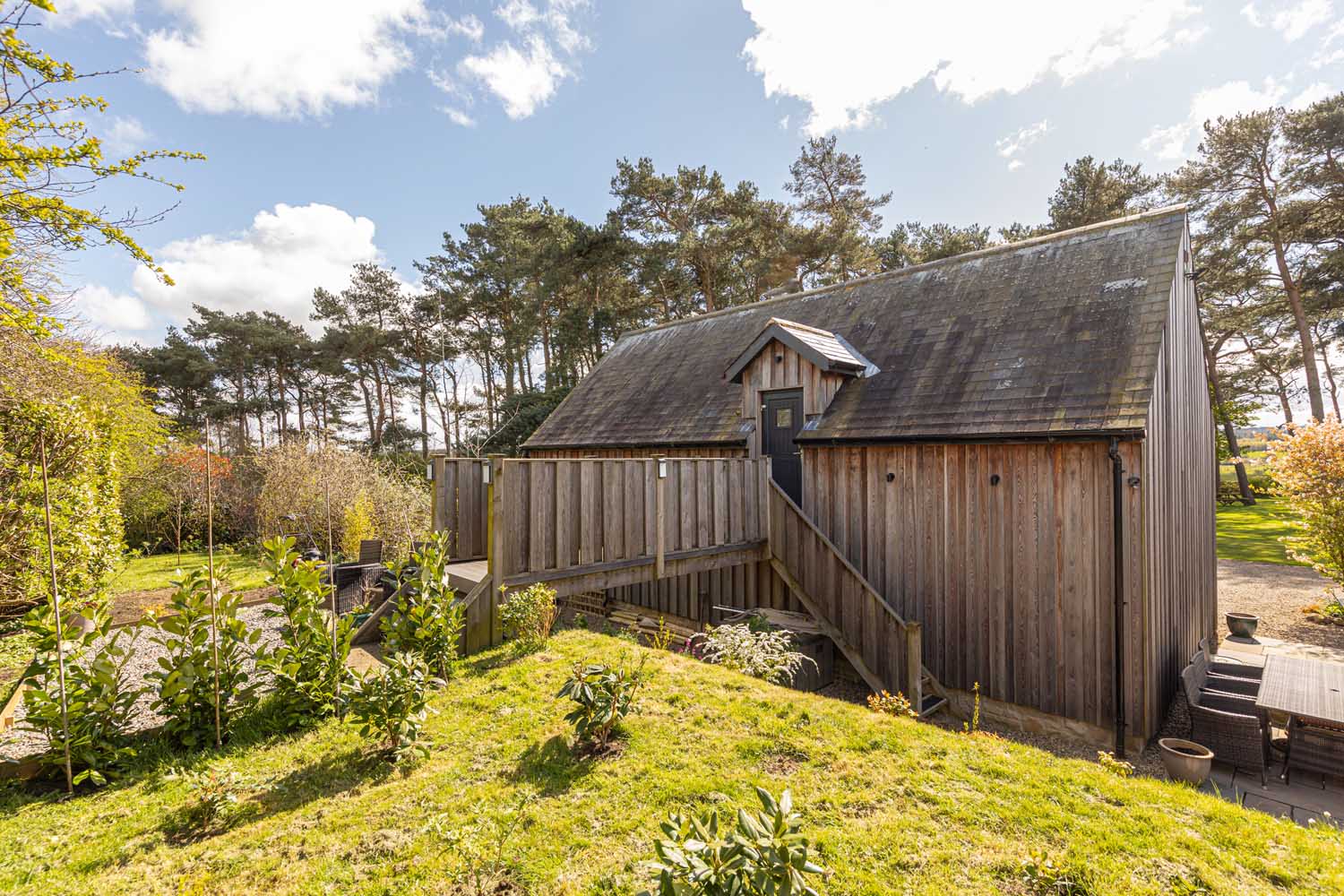 This distinctive, cedar-clad building could potentially be reconfigured into further dwelling space, subject to the necessary consents.