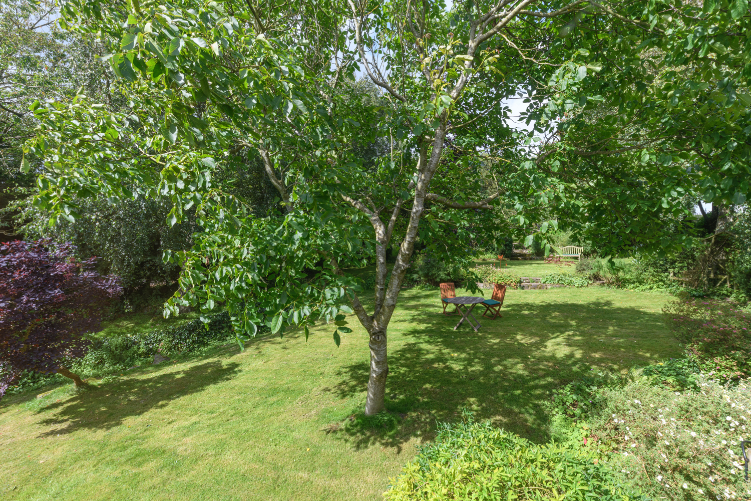 Externally, West Cottage excels. The property sits on a plot of 2.35 acres, of which 1.85 acres are planted with over 800 mixed deciduous trees. The generous rear garden is mainly laid to lawn with borders, mature trees and an orchard area with apple, damson, plum, and crab apple trees. Visits from the local wildlife are frequent in the garden, making it a wonderfully serene spot to sit. A timber double garage provides ample storage in addition to two stone stores.