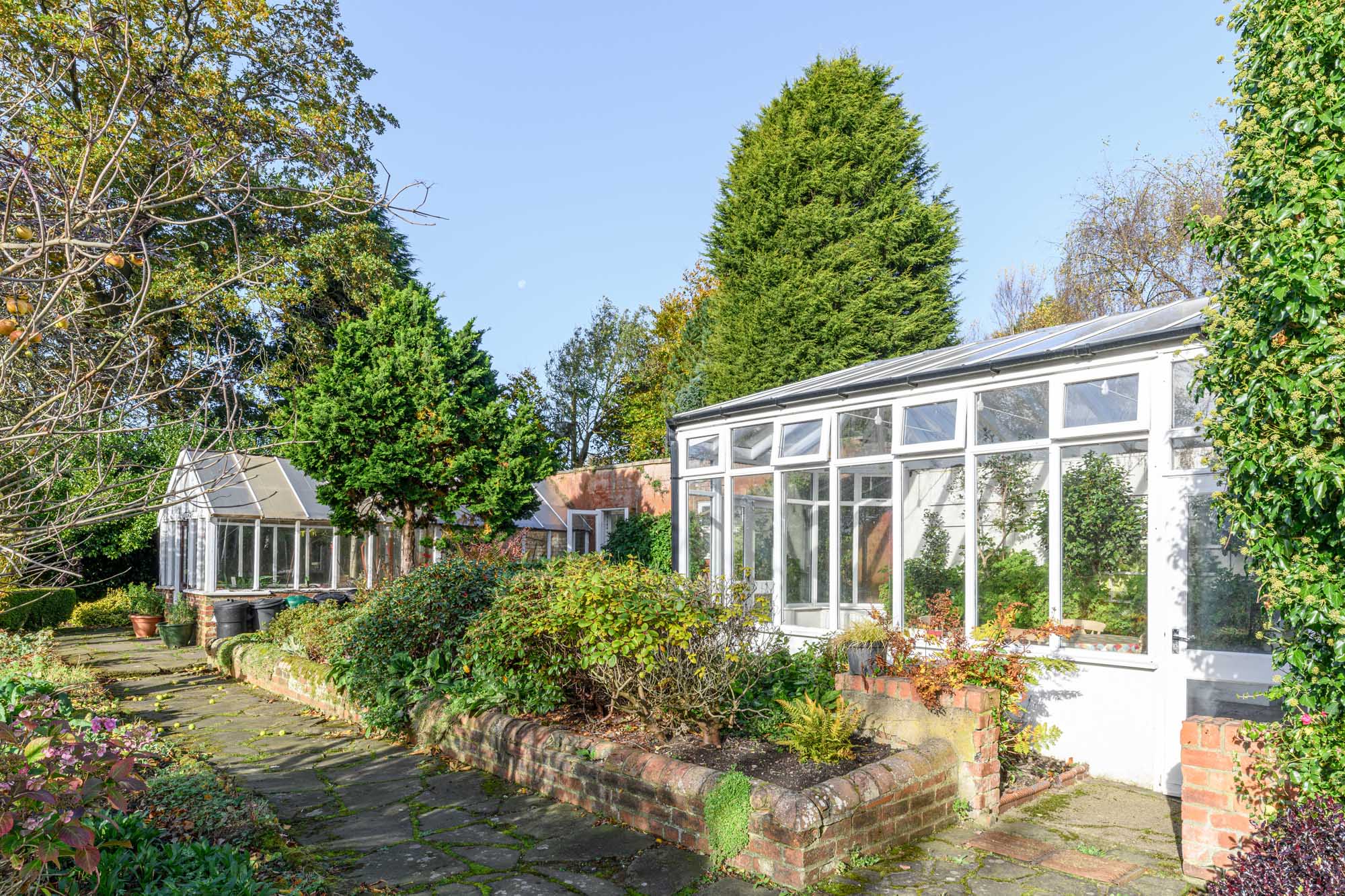The principal sitting room, with large windows overlooking the gardens, offers an abundance of natural light and connects to a south-facing conservatory. The adjoining dining room retains charming period features, and the spacious kitchen provides an excellent foundation for a modern upgrade, with views of the gardens and ample space for redesign.