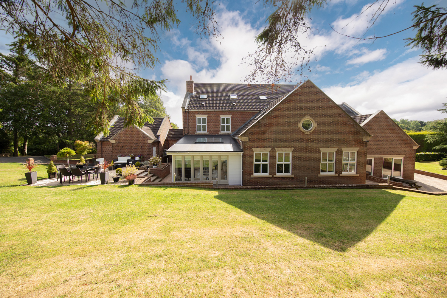 To the rear, a spectacular sunroom is bathed in natural light, thanks to full-height wraparound glazing and a striking overhead skylight. Adjoining this is the generously sized games room, comfortably accommodating a full-size snooker table with a bar at one end. While ideal for entertaining, it could equally serve as an additional reception space. Both of these rooms open directly onto the patio and gardens beyond, providing a fantastic indoor/outdoor living space to enjoy with friends and family.