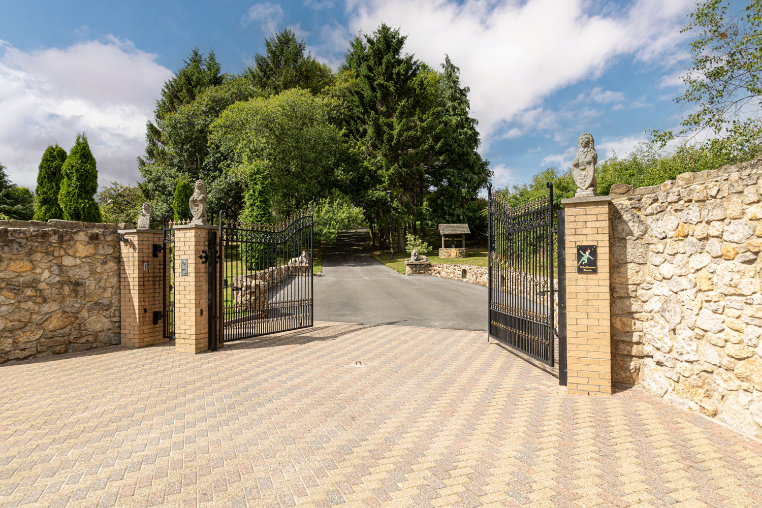 Windlestone Manor sits within wonderful private gardens and grounds extending in all to around 1.5 acres. The imposing pillared entrance provides a suitably impressive arrival to the property. Electronically operated steel security gates open to the driveway which curves up to the house, passing through a small section of woodland. To the front of the property is a large gravelled parking and turning area with an attractive central fountain. The detached garage offers additional secure parking with electric roller door.
